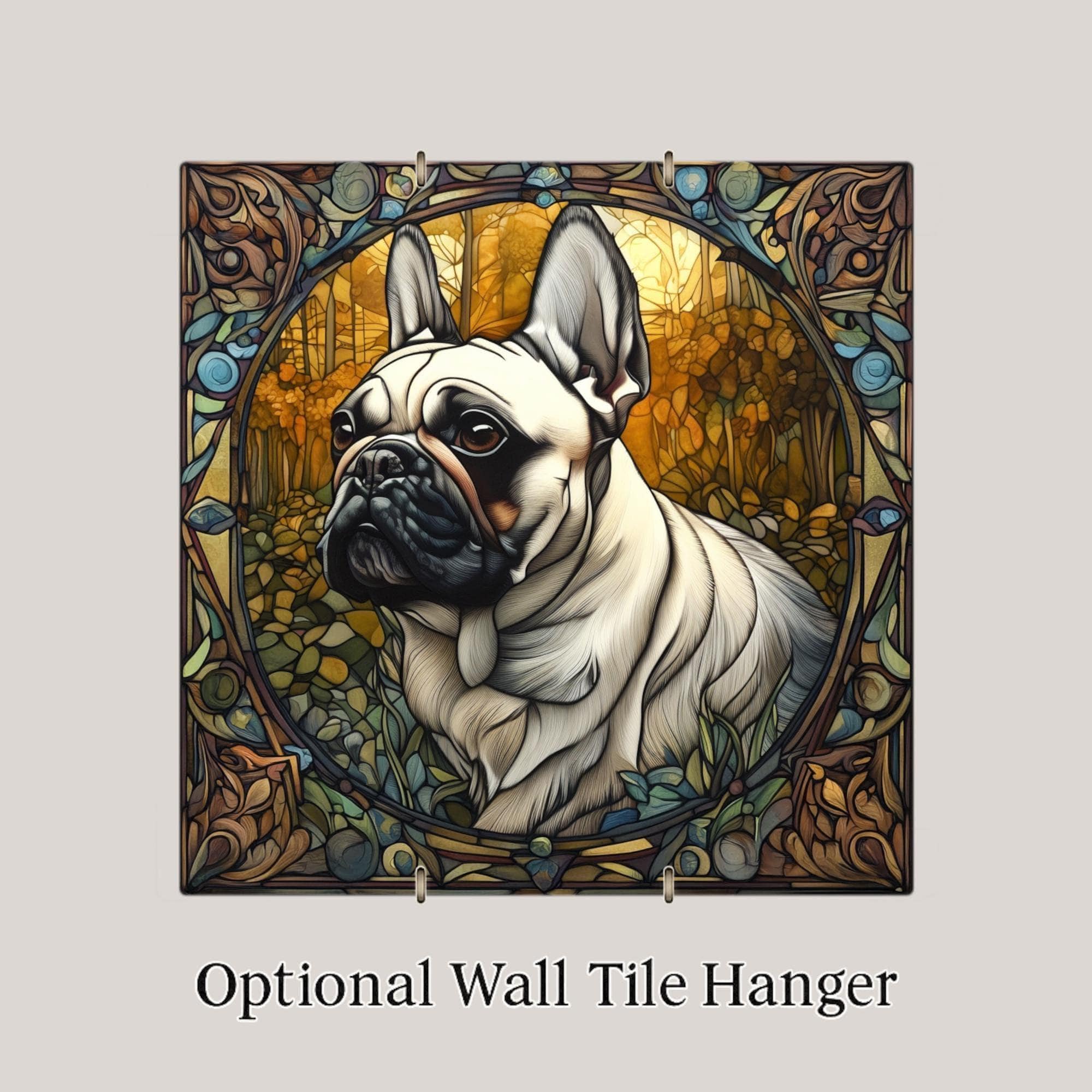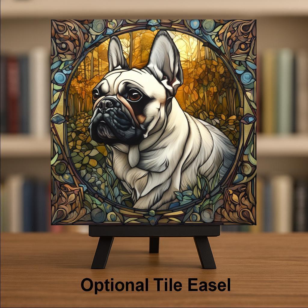 French Bulldogs are known for their expressive faces, loyal companionship, and unmistakable personality. This stained glass inspired artwork was created to capture that charm in a timeless decorative style.
