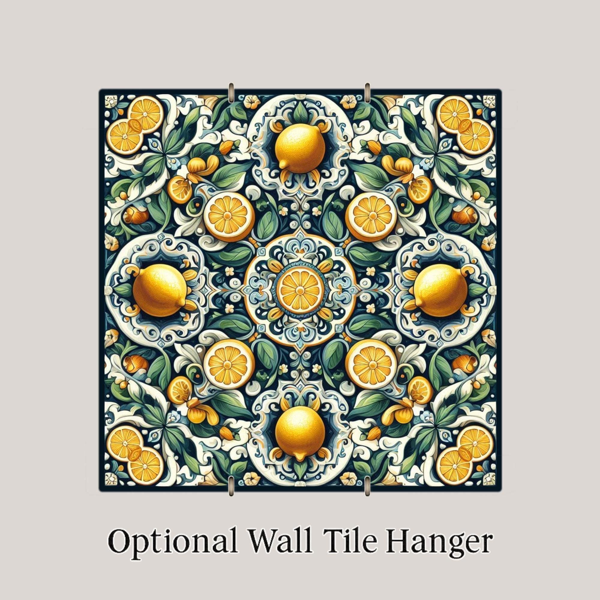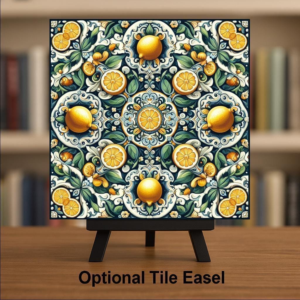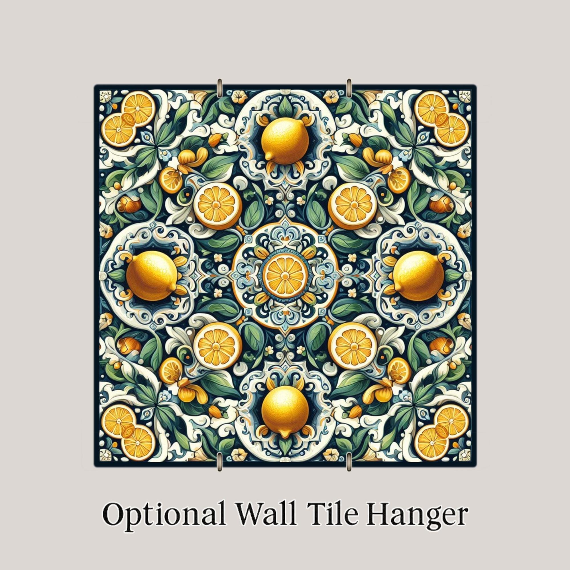 It's also display-ready—choose an optional tile wall hanger for vertical mounting, an easel tile stand for tabletop placement, or cork backing for trivet use. Whether you're a fan of Mediterranean design or simply love lemons, this tile adds zest and style wherever it’s displayed.