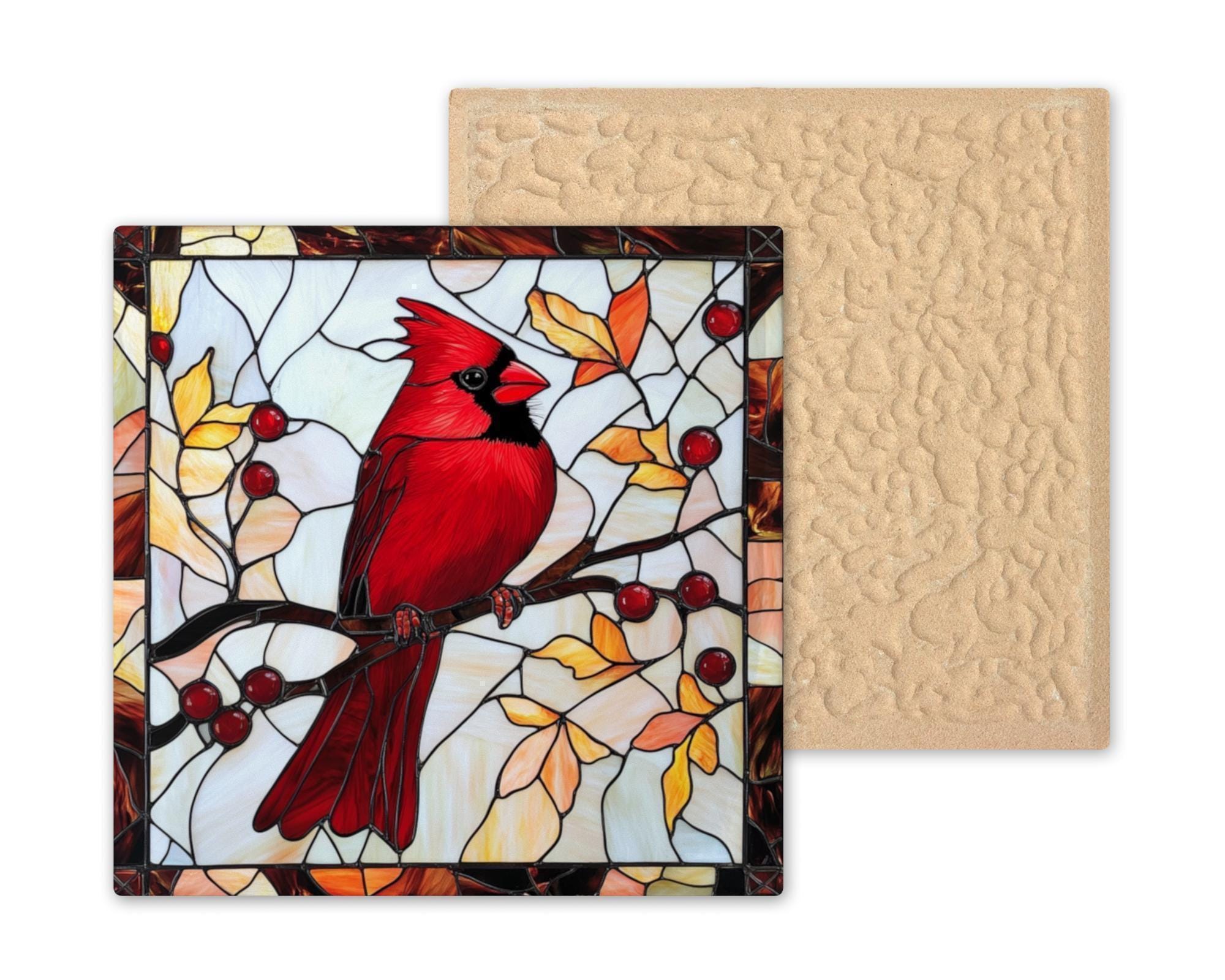 Cardinals are cherished symbols of love, hope, and memory. This tile is especially meaningful as a memorial gift or thoughtful decor item for those who connect deeply with birds and nature. Its stained glass look offers timeless beauty and brings a sense of comfort and peace to home interiors.