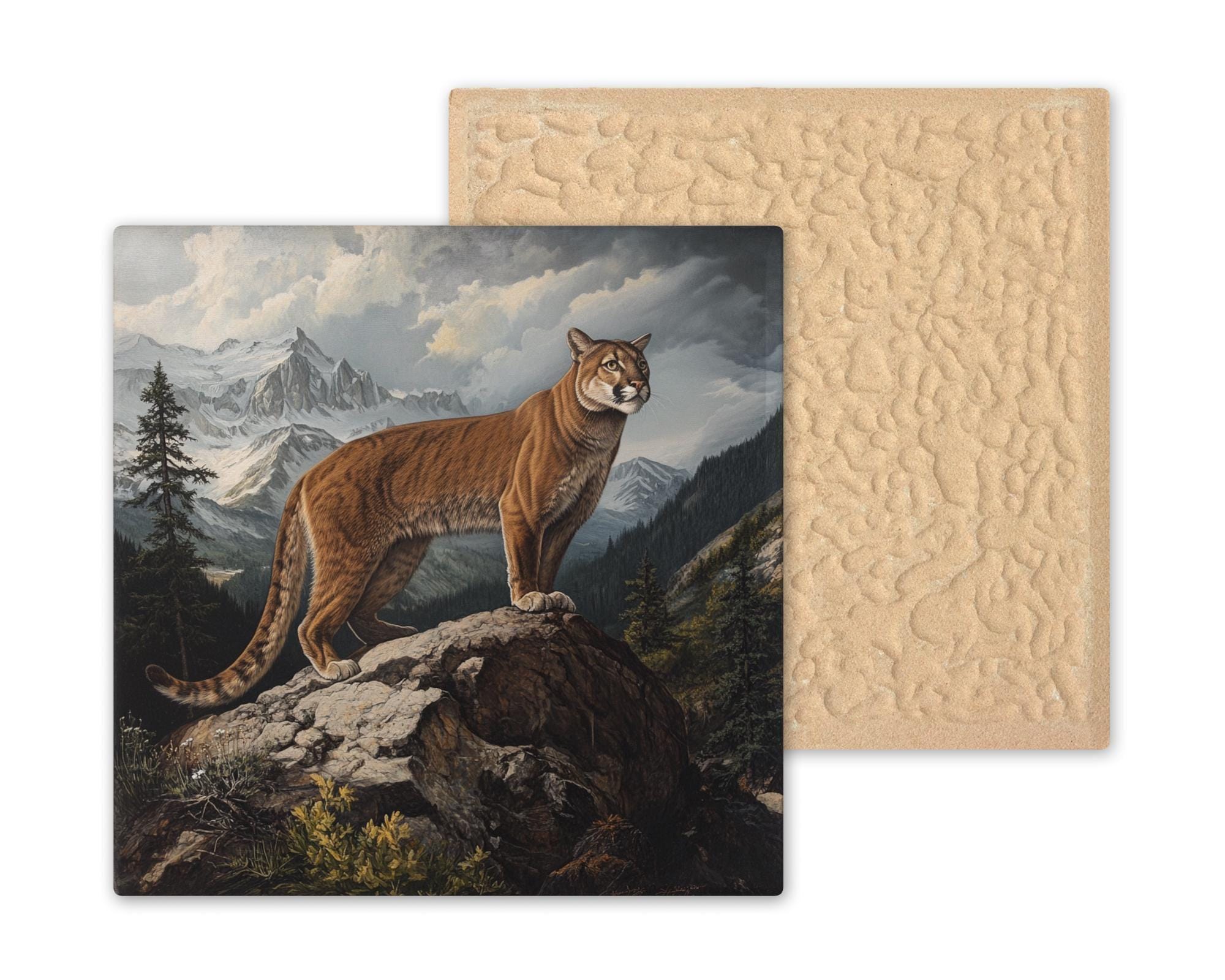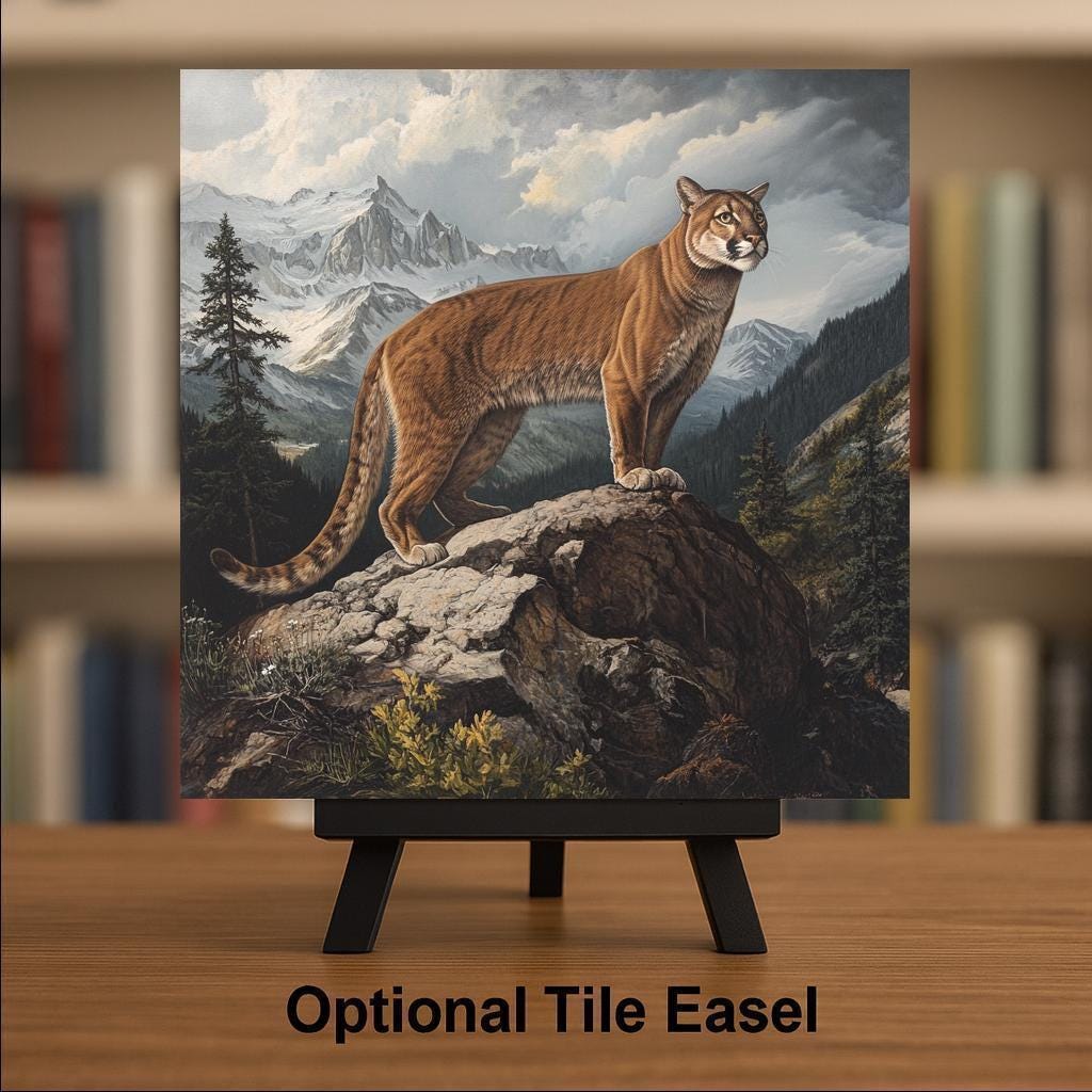 Ideal for nature lovers, hunters, or Western art collectors, this tile adds character and warmth to woodsy interiors and wildlife-themed spaces. It also makes a thoughtful gift for fans of big cats or outdoor adventure.