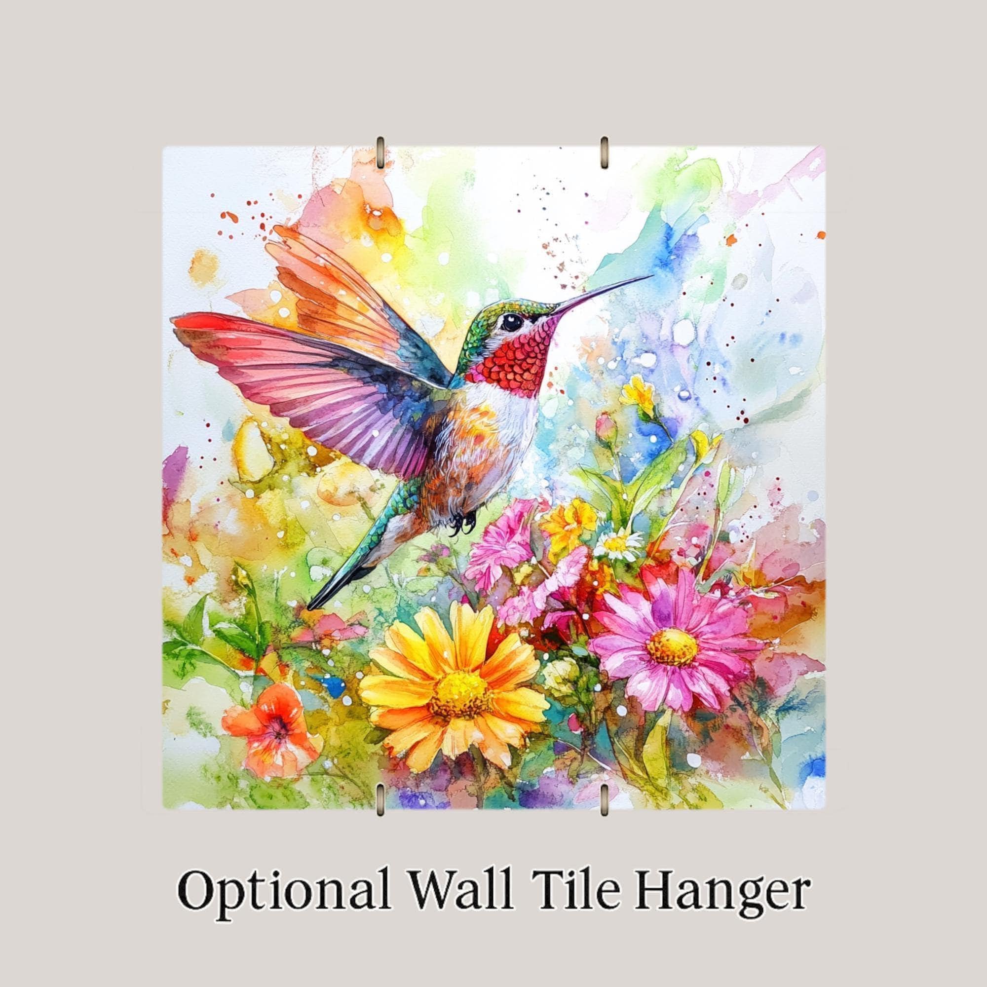 This watercolor hummingbird ceramic tile brings a splash of color and joy into your home. Featuring a vibrant hummingbird mid-flight above a field of blooming wildflowers, the artwork glows with the energy of spring and the magic of movement. The expressive brushstrokes and soft splatters create a light, dreamy look that bird lovers and nature enthusiasts will adore.