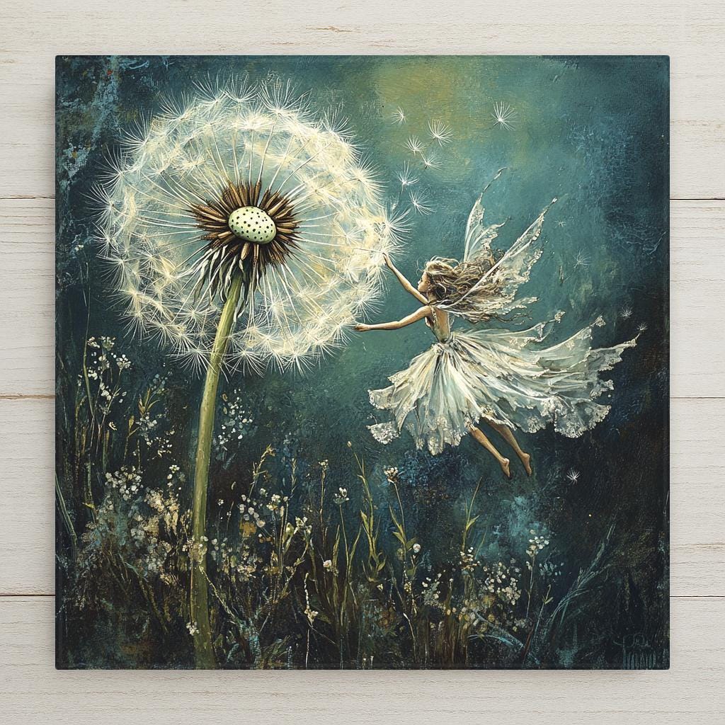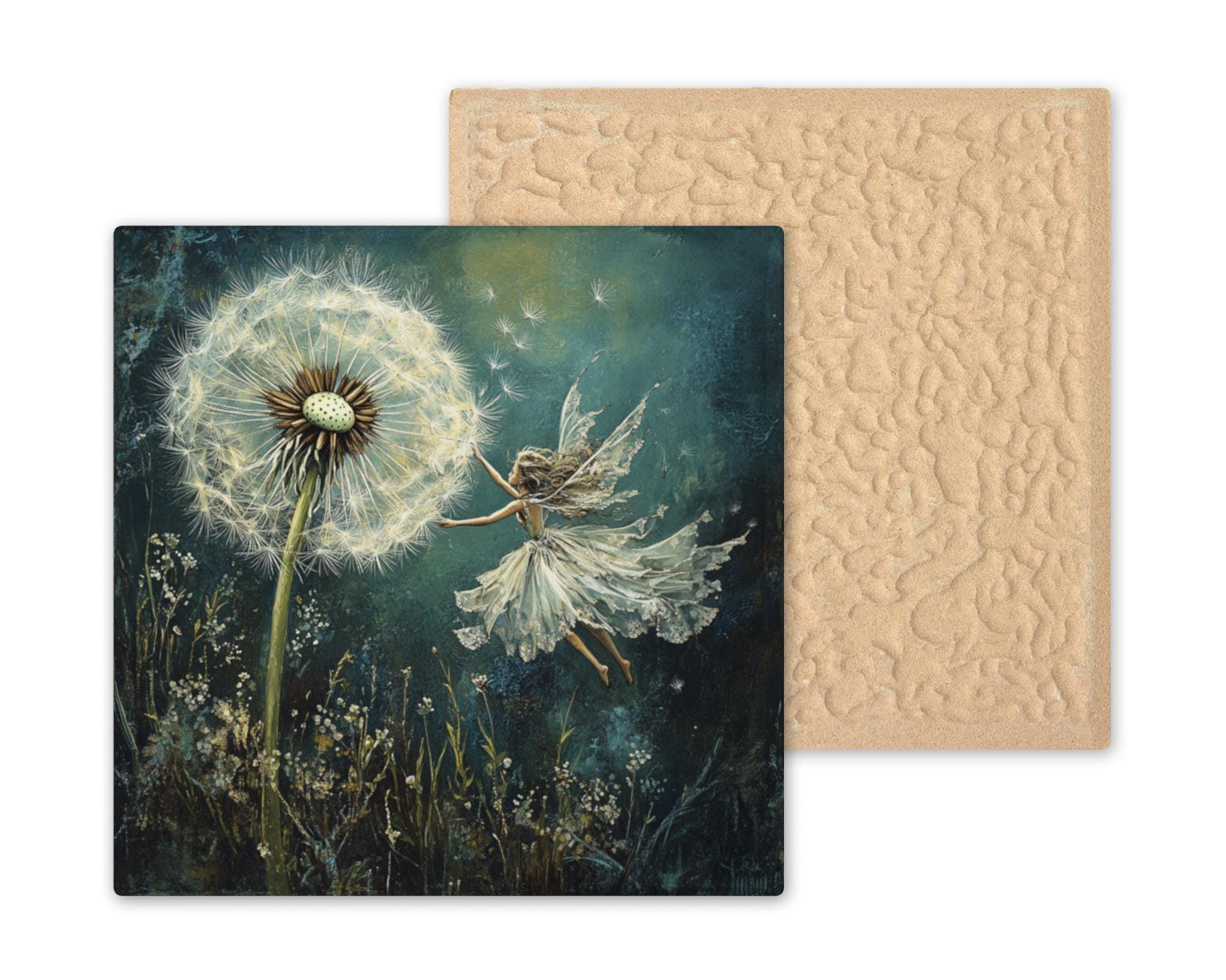This handmade tile makes a thoughtful gift for fairy lovers, gardeners, or anyone who finds beauty in tiny, magical moments. Its fantasy vibe is gentle and sweet, and the dandelion motif adds a natural elegance. Whether you're decorating a nursery or enhancing a gallery wall, this piece offers both style and a sense of storybook serenity.