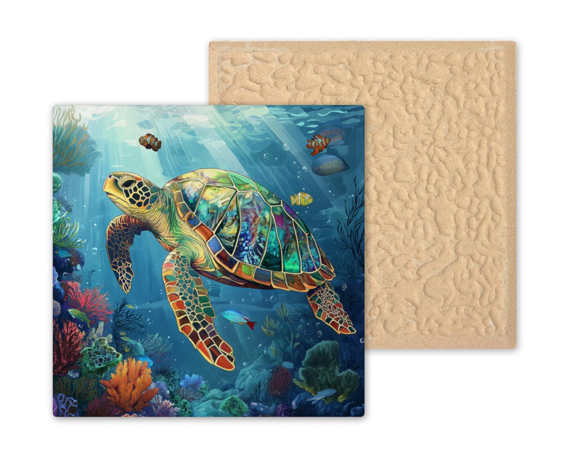 Add a touch of coastal charm to your home with this stunning Sea Turtle Ceramic Tile Art. Perfect for wildlife and ocean lovers, this handmade piece will bring a touch of Art Deco Nautical style to any space. Use it as a wall decor, trivet, or coaster to infuse your beach house with a unique artistic flair.