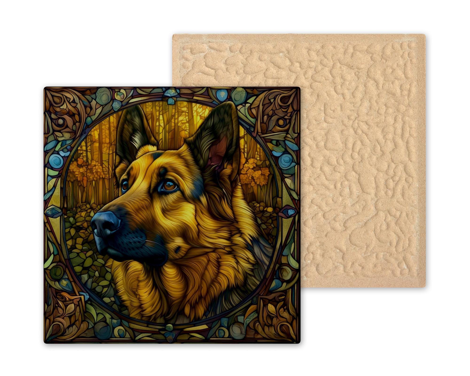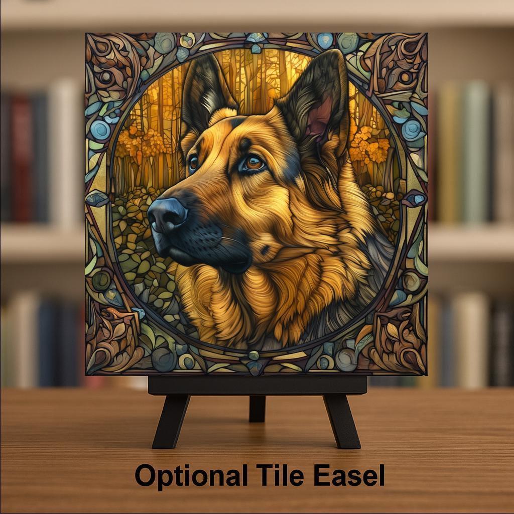 This German shepherd ceramic tile was designed for the GSD community — one of the most devoted and vocal breed communities in the dog world. German shepherd owners tend to be deeply bonded with their dogs in ways that go beyond pet ownership into genuine partnership, and they want art that reflects that bond with the dignity it deserves.
