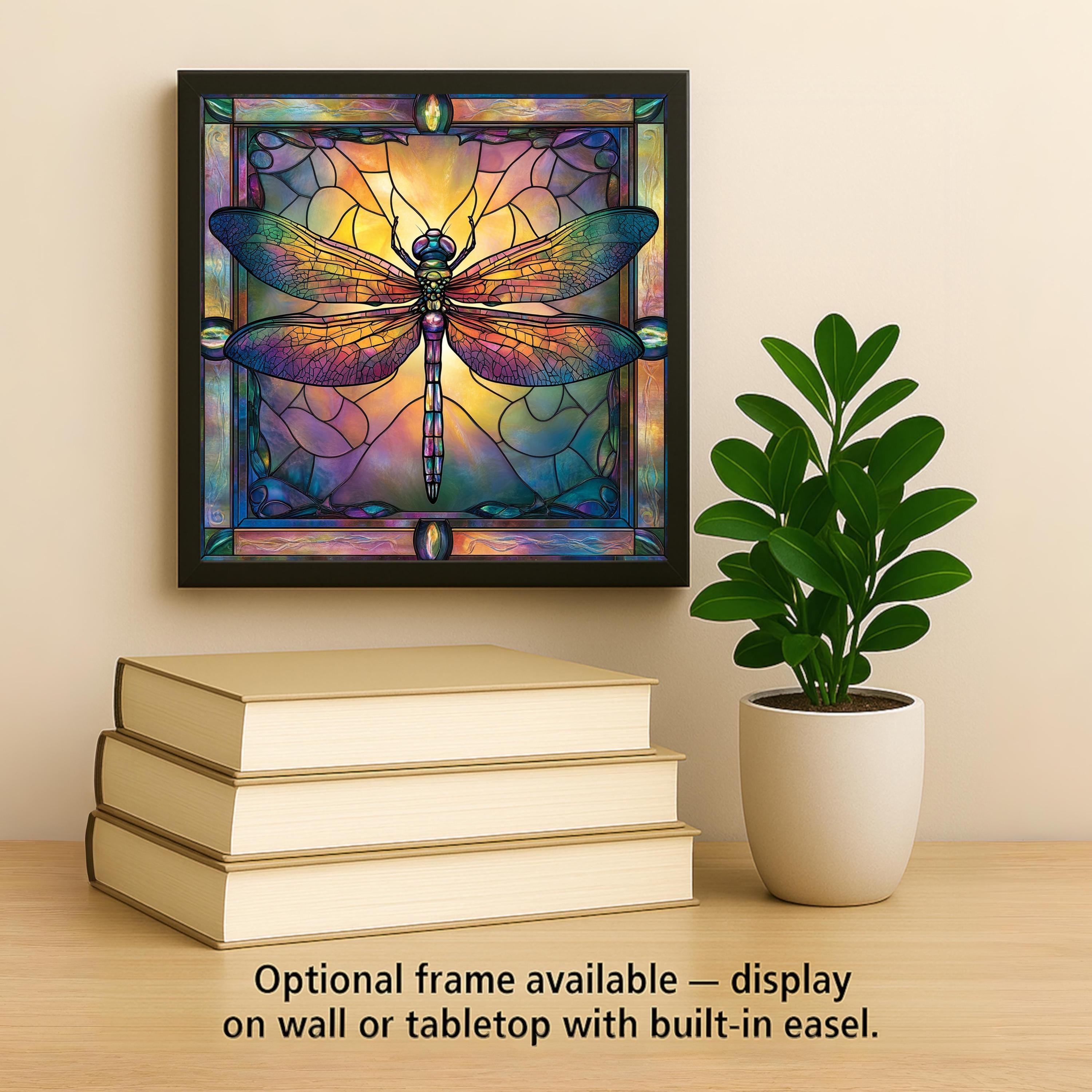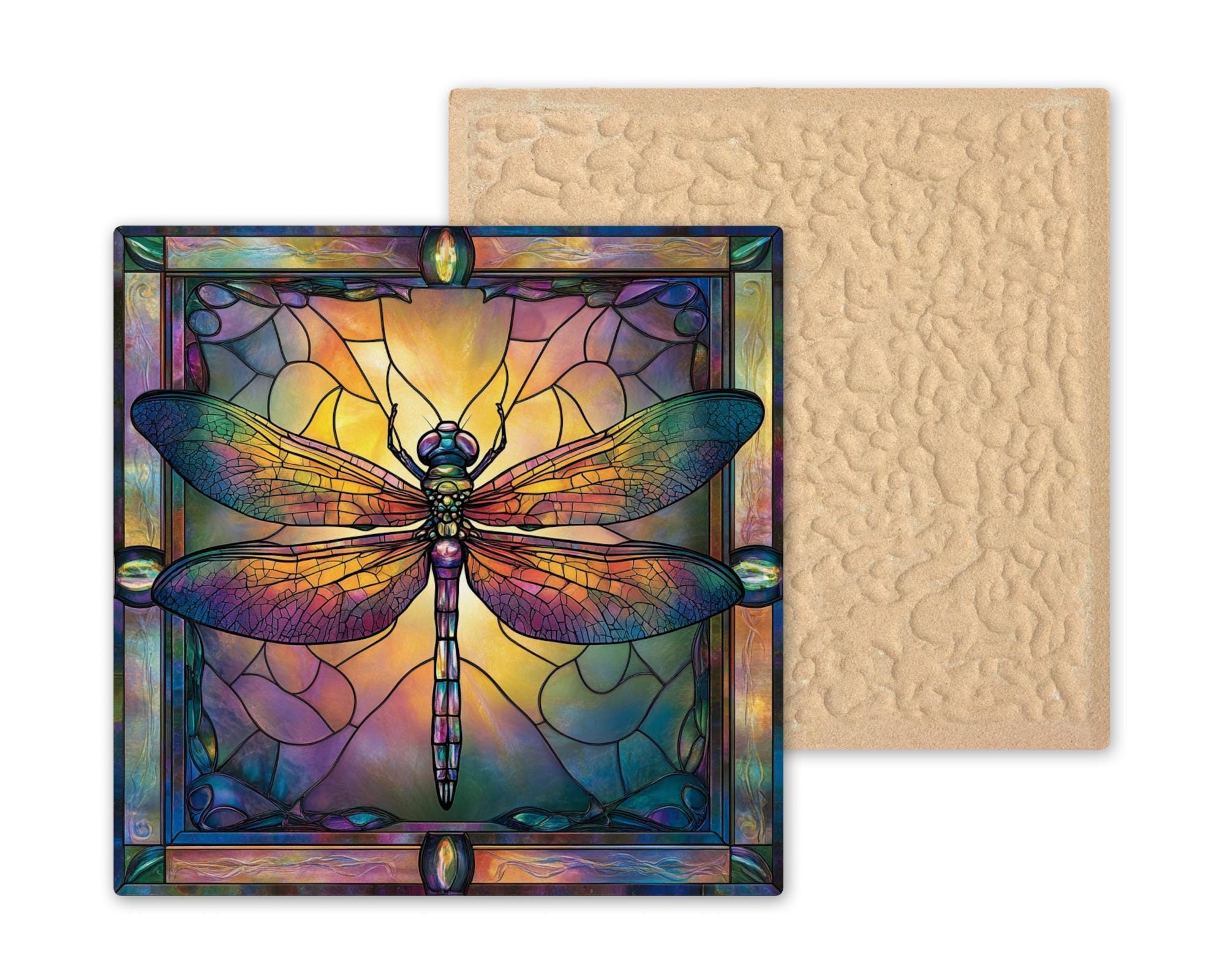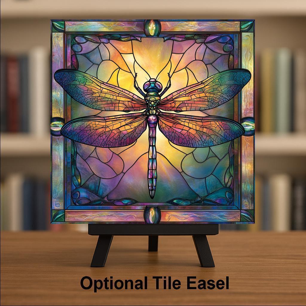 Celebrate the magic of transformation with this handcrafted ceramic tile featuring a stained glass-style dragonfly in radiant Art Nouveau fashion. With luminous wings and iridescent colors, this tile channels the grace of Tiffany lamps and the symbolism of rebirth and change. Rich golds, violets, blues, and greens form a hypnotic backdrop that evokes both elegance and whimsy. This is more than wall art—it’s a unique tribute to nature’s fleeting beauty. Perfect for entryways, bedrooms, sunrooms, or spiritual spaces, this tile invites calm, creativity, and color. Display as a wall accent or tabletop trivet—great for dragonfly collectors, boho décor enthusiasts, or anyone in need of a standout handmade gift. Elevate your home’s story with this symbolic piece that’s both artistic and meaningful. Add a cork back, tile stand, or wall hanger to fit your décor needs.