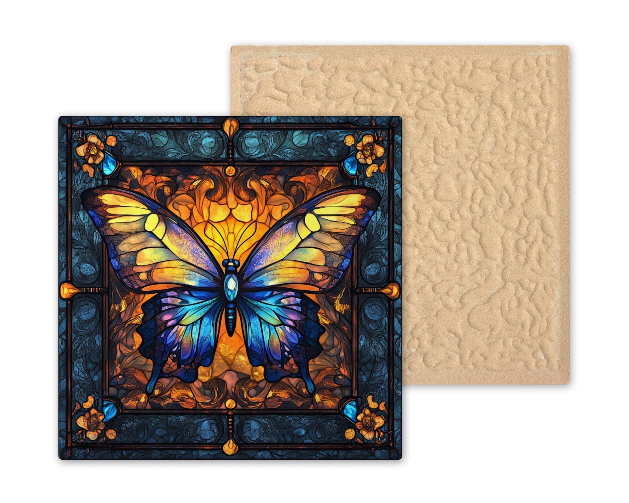 Each detail mimics the rich textures of real stained glass, offering a handcrafted look in a durable ceramic finish. Perfect for bohemian, spiritual, vintage, or art deco interiors, this butterfly tile is a brilliant conversation piece and visual centerpiece.