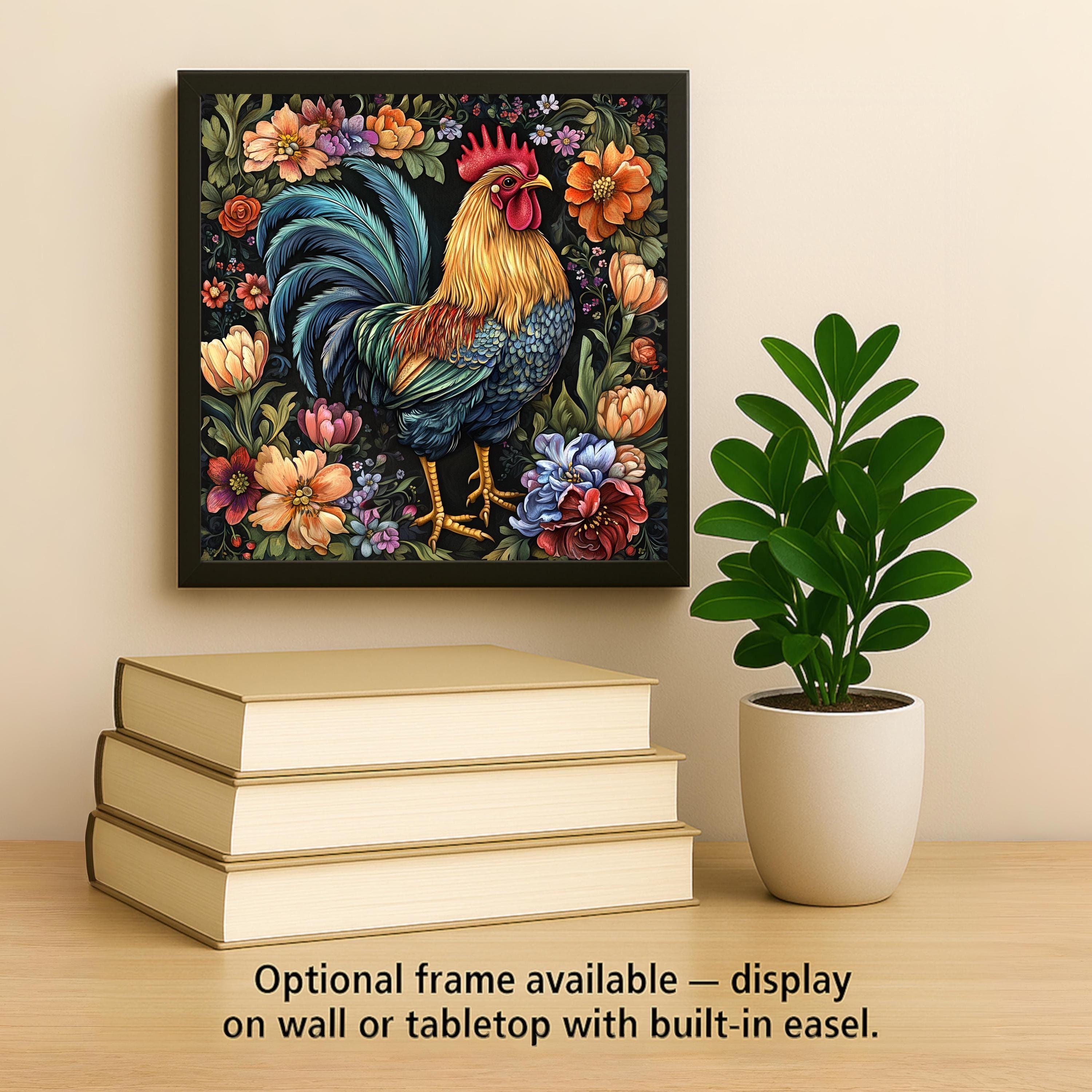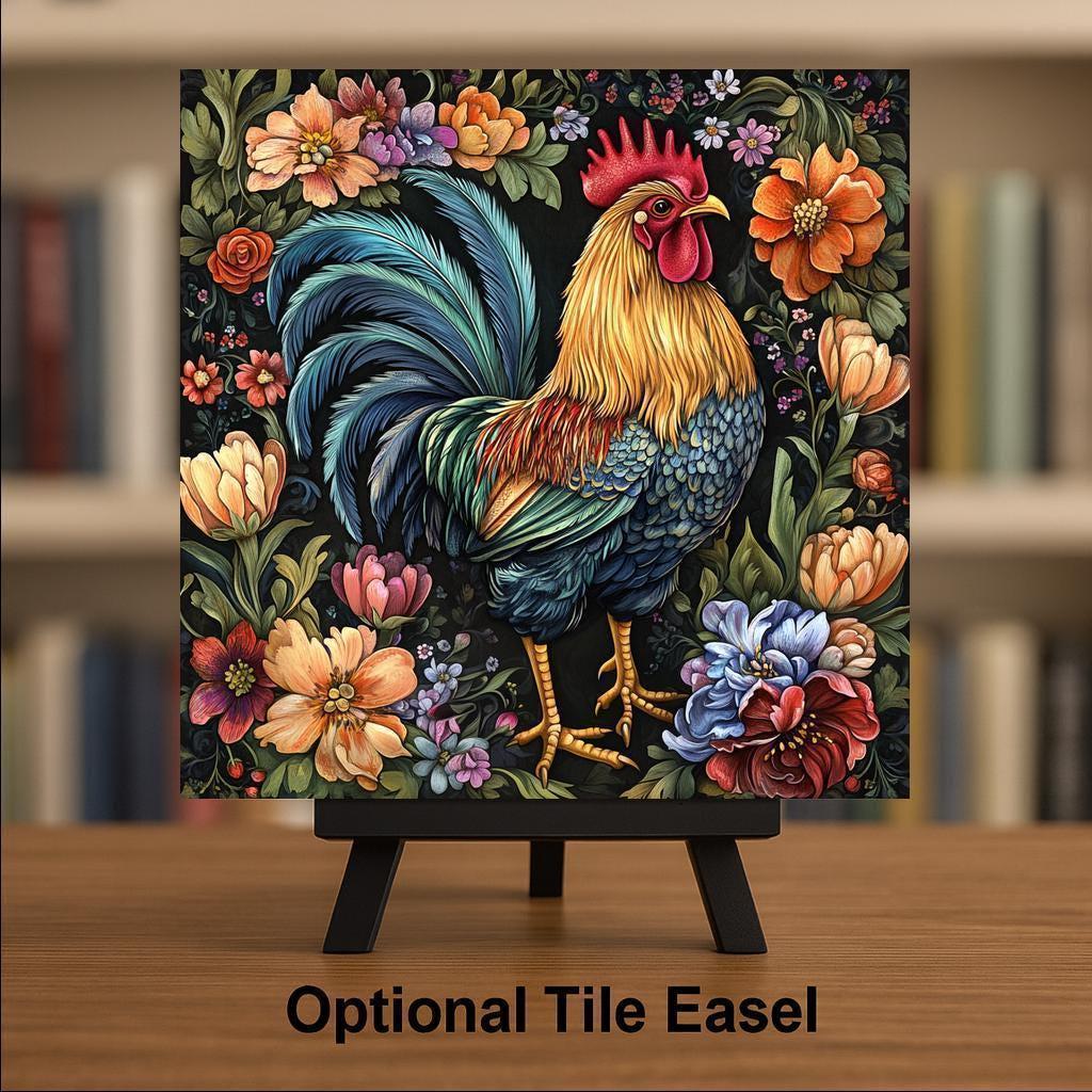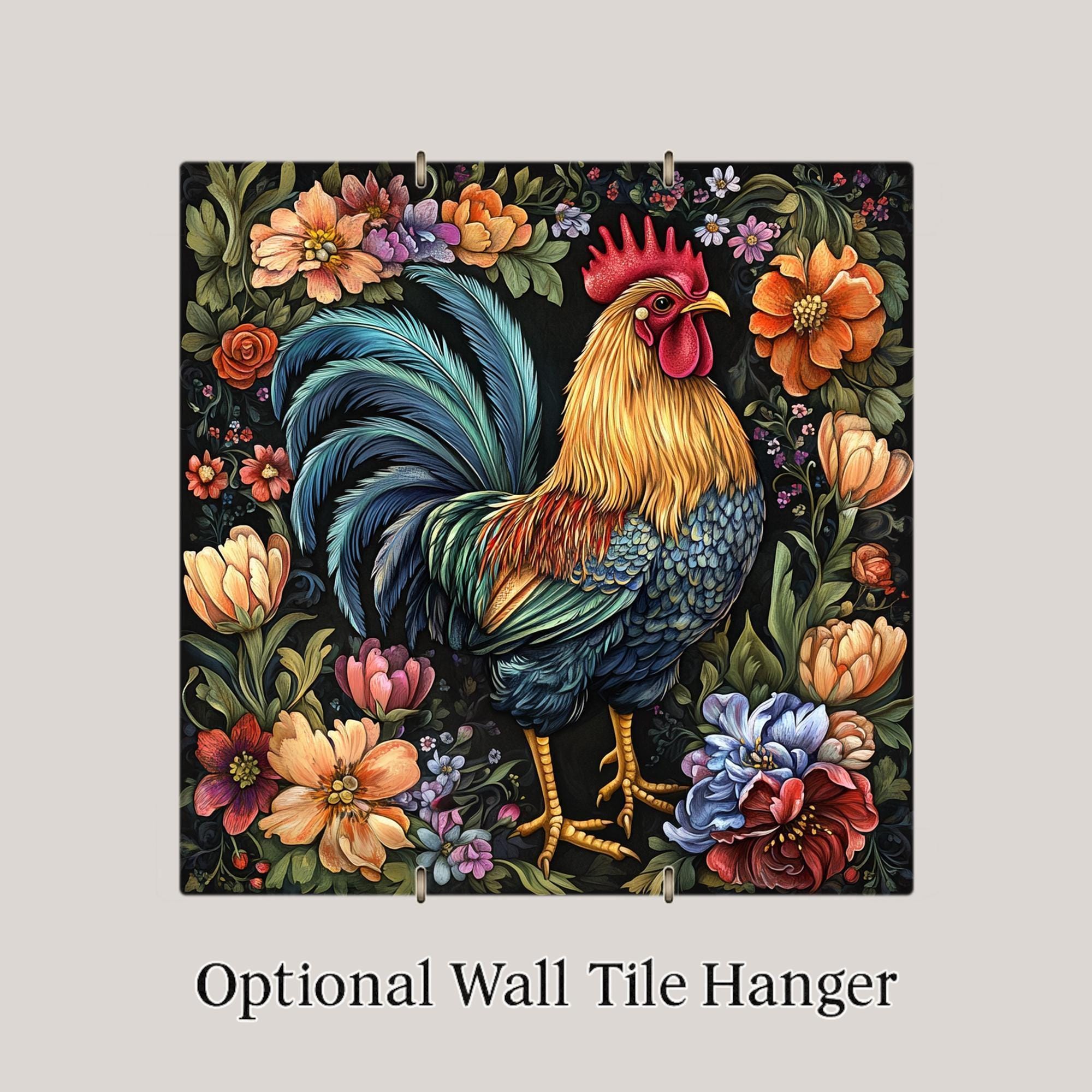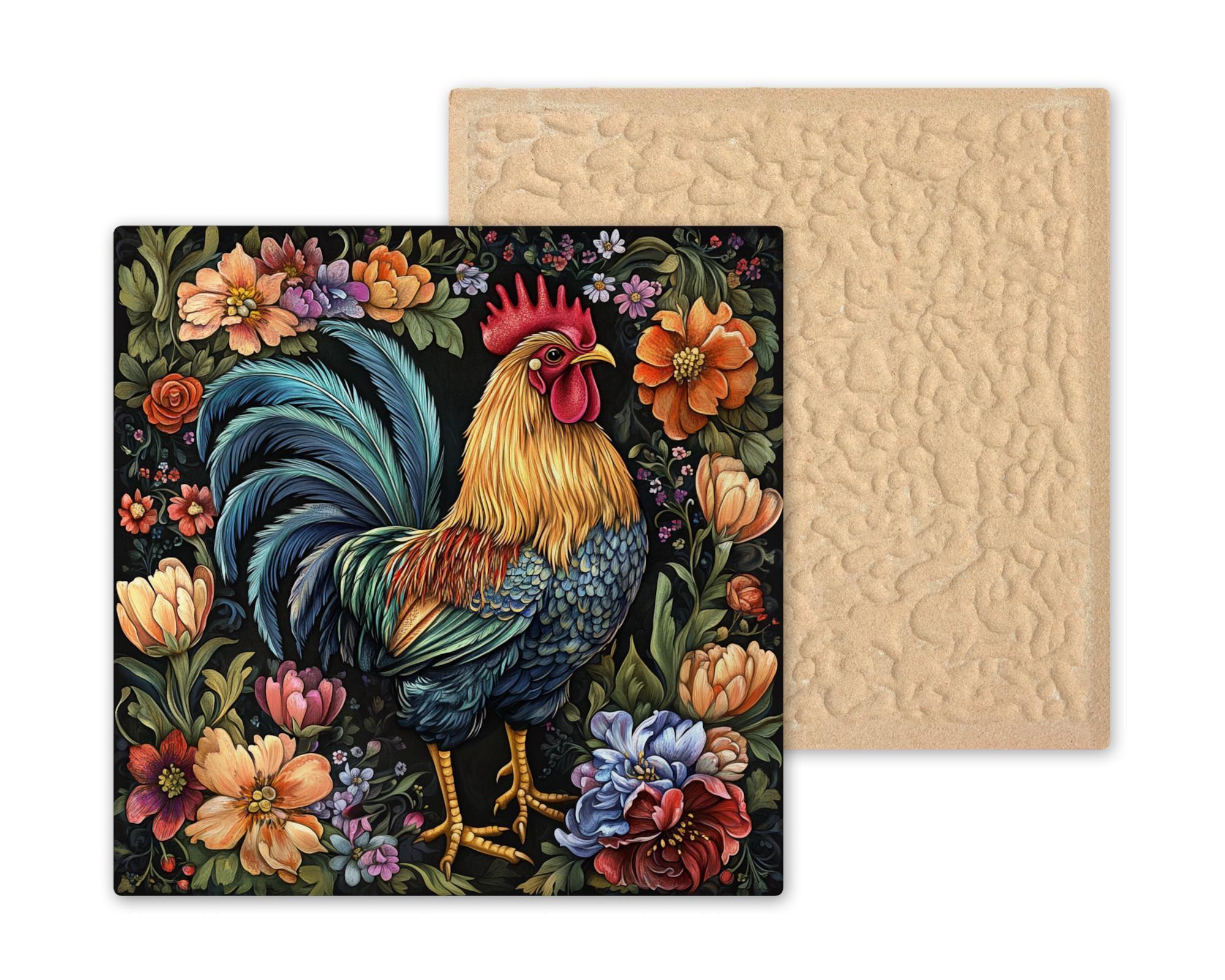 Ideal for farmhouse-style homes, country kitchens, or folk art collections, the tile pairs perfectly with cottagecore décor or rustic farmhouse themes. Every petal, plume, and feather is richly detailed and vibrantly painted, giving the design a dynamic, hand-illustrated look. This makes it a standout accent for cozy homes, modern barns, or even urban spaces that need a touch of countryside soul.