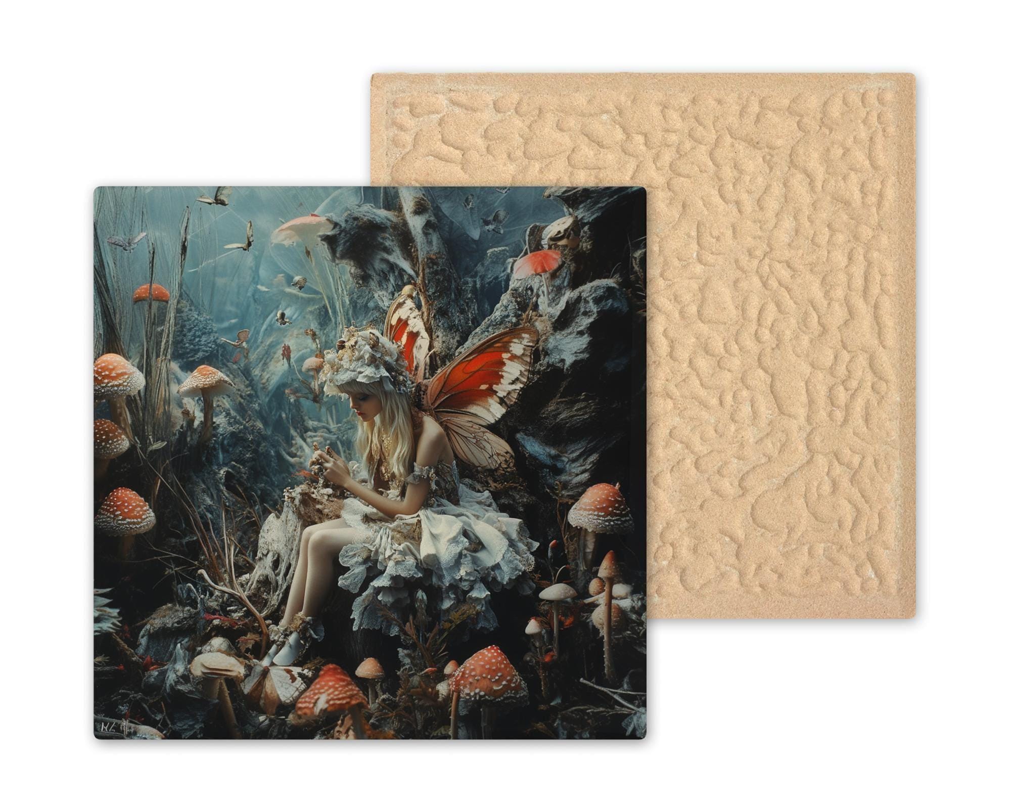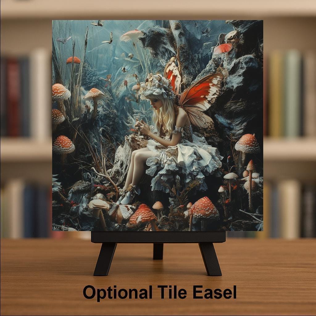 This fantasy tile is ideal for fairycore lovers, mushroom art collectors, enchanted forest fans, cottagecore decor, and whimsical home styling. It enhances bedrooms, reading spaces, offices, craft rooms, garden-themed areas, or any cozy corner needing magical woodland charm. It also makes a unique gift for someone who loves fantasy, nature themes, and dreamy fairy art.