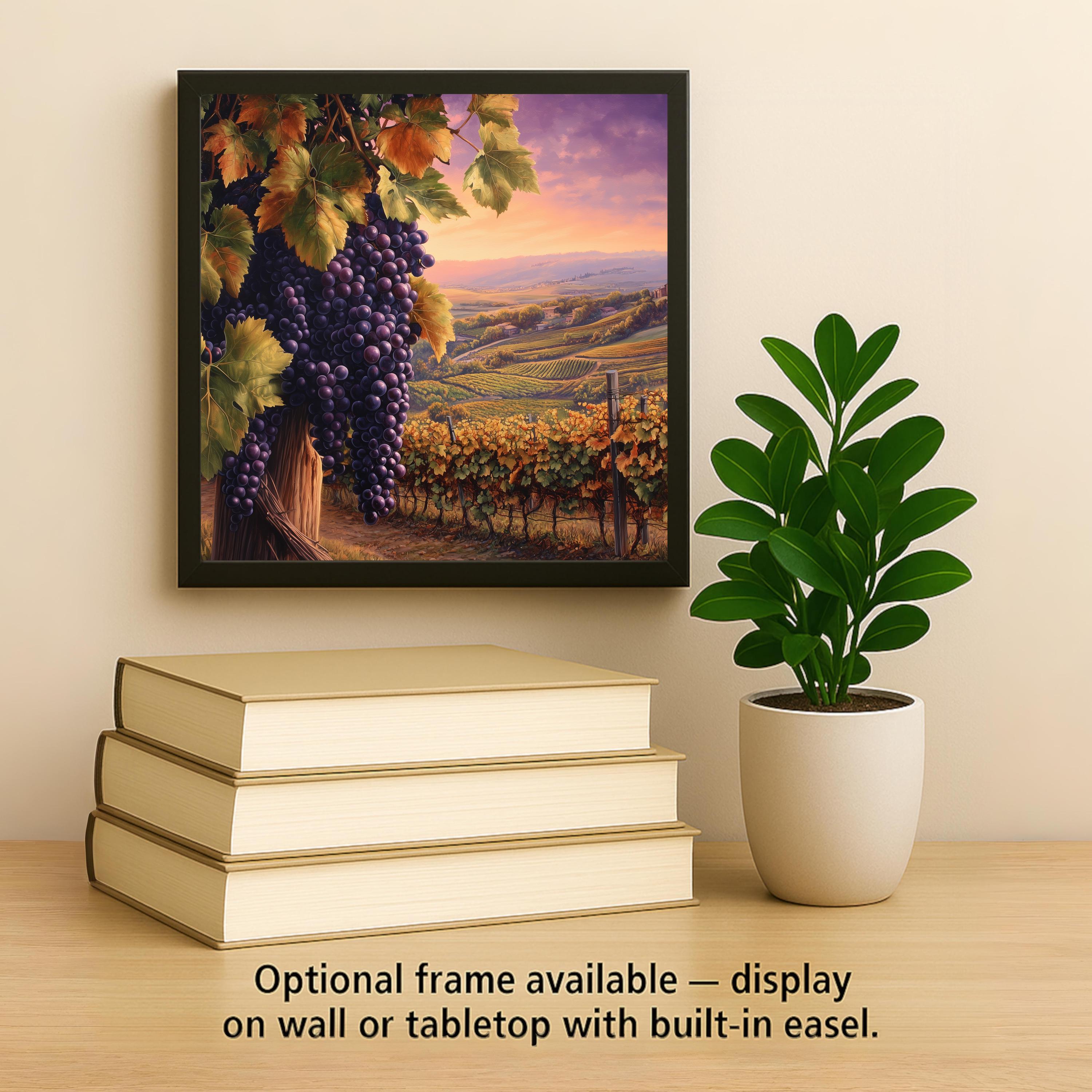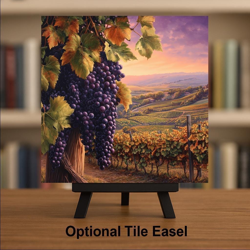 It can be displayed multiple ways—hang it using an optional tile wall hanger, stand it on a shelf with an easel tile stand, or choose a cork backing for countertop display. No matter how it’s featured, this artwork offers a window into the heart of wine country.