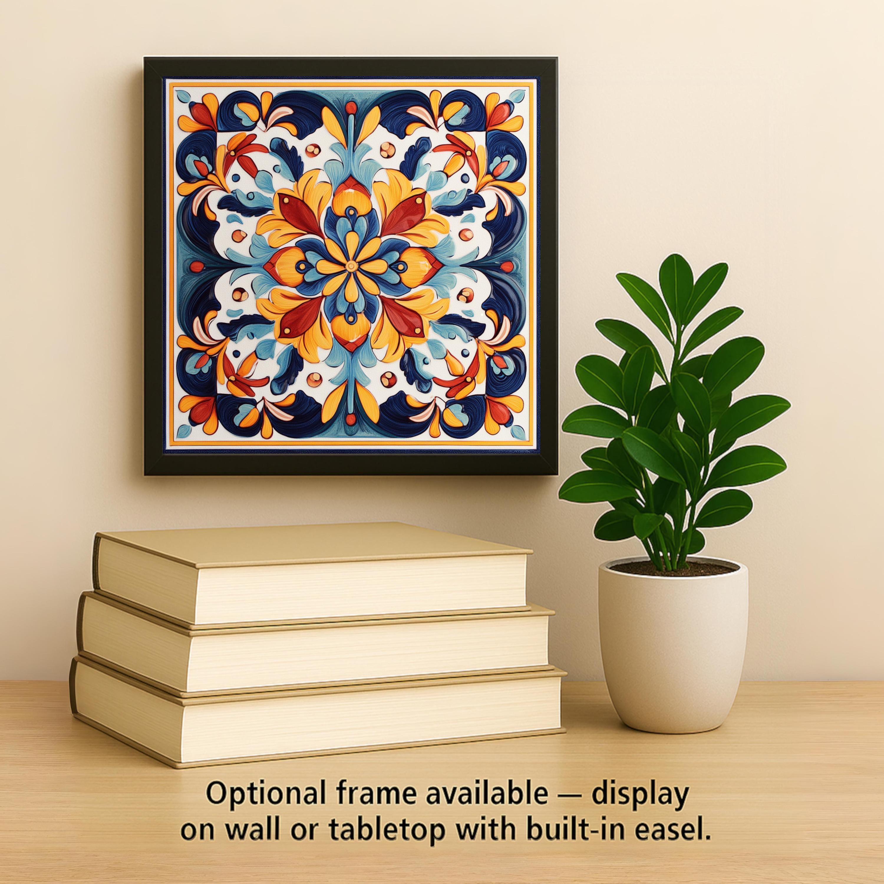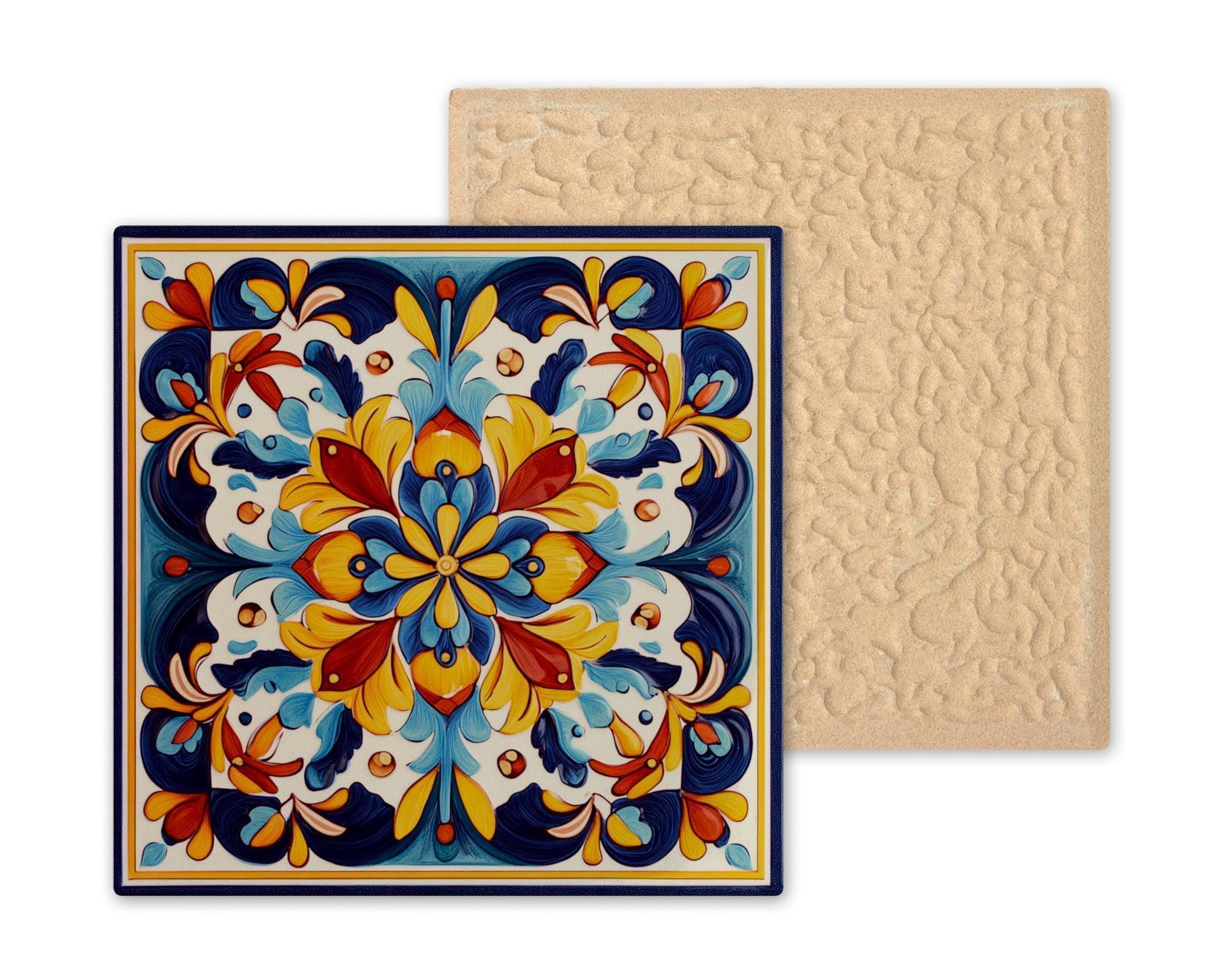 Crafted with permanent, high-resolution printing, it mimics the look of painted Talavera with none of the fragility. Use it as a bold trivet, a colorful wall tile, or a standout accent in your decorative tile installation. The vibrant tones pop against any background and infuse a sense of joy and celebration into your space.