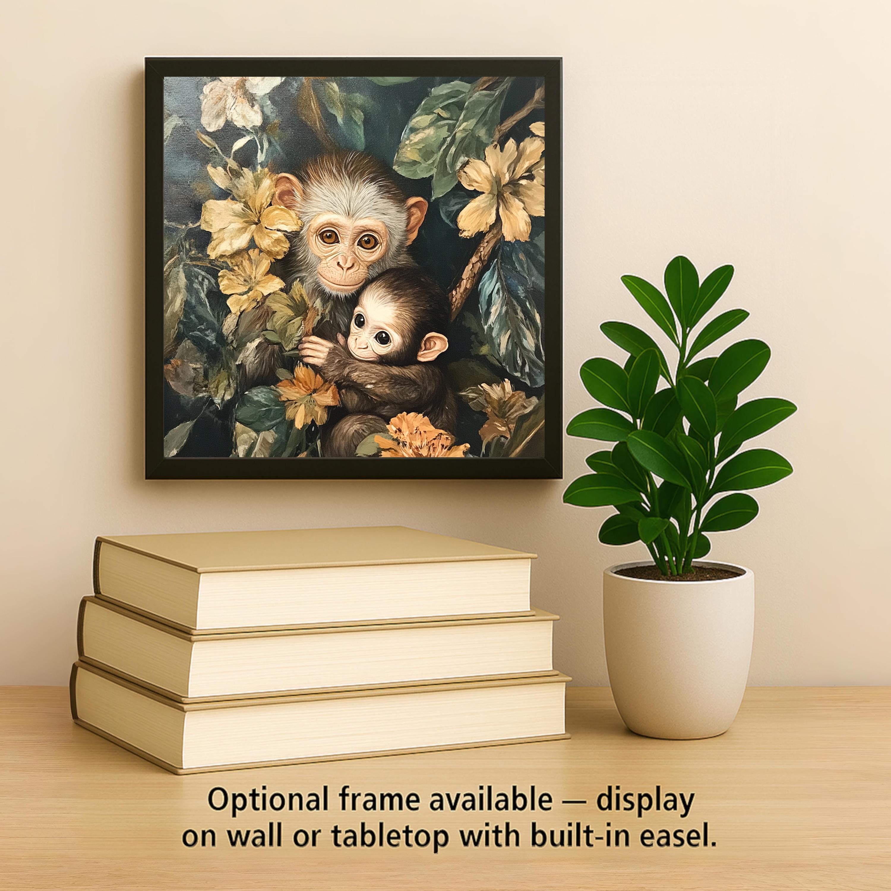 The detailed design evokes a fairytale atmosphere while celebrating maternal love and the beauty of forest life. It’s a perfect choice for animal lovers, monkey collectors, or anyone drawn to enchanting nature scenes.