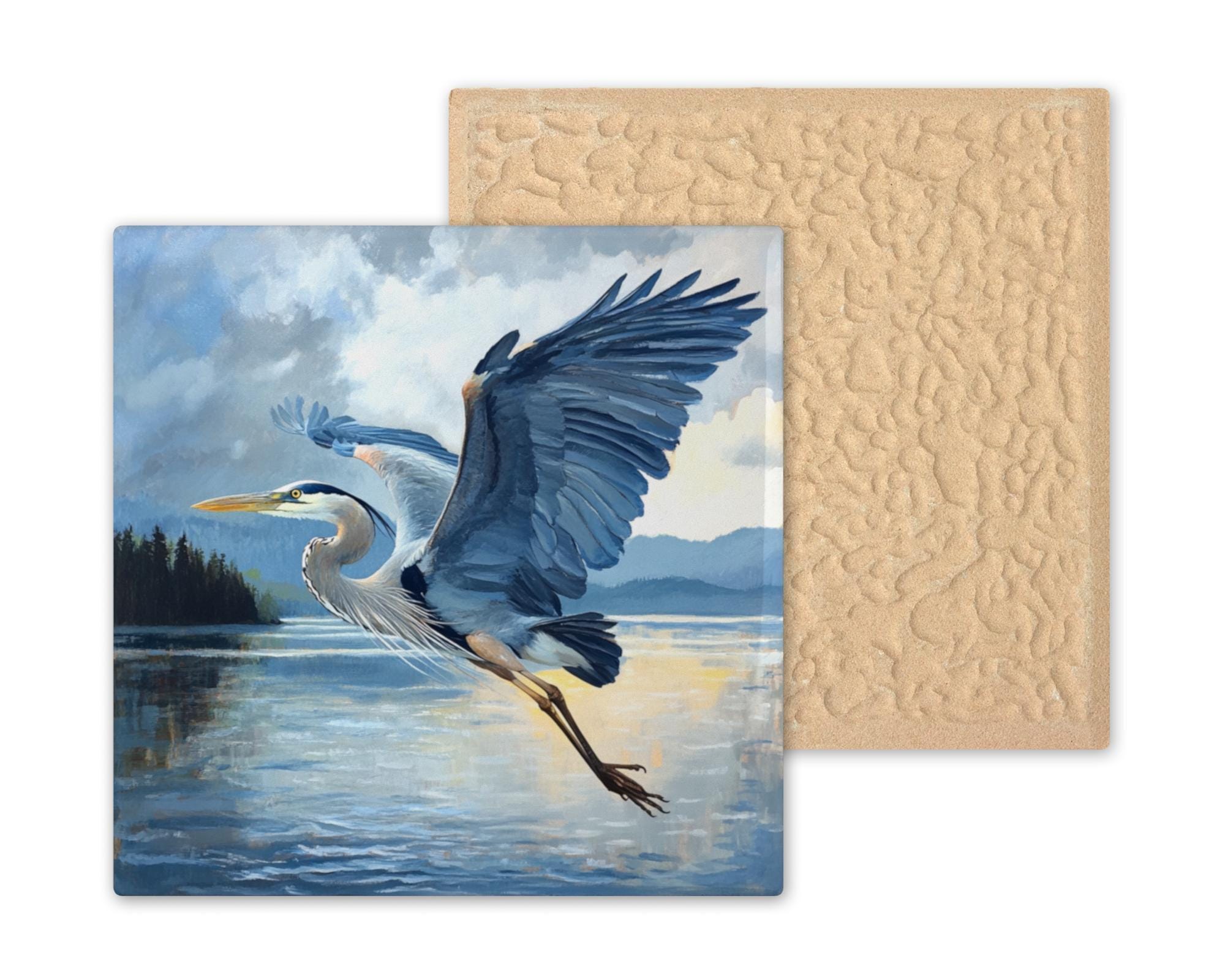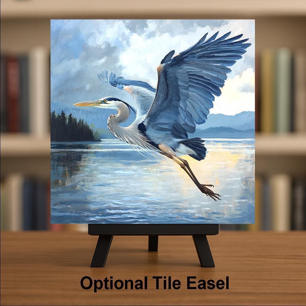 Add a touch of nature to your space with this stunning Great Blue Heron ceramic tile art inspired by the Salish Sea. Perfect for bird lovers, this classic bird art trivet is a unique piece of wall decor that will bring a sense of tranquility to any room. Handcrafted with love, this Audubon-inspired blue heron tile is a must-have for any nature enthusiast.