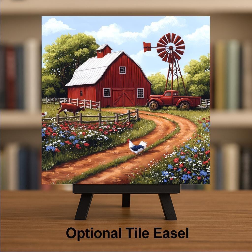 Display it with a tile wall hanger, set it up on a counter with an easel tile stand, or use it with a cork backing for functional farmhouse flair. Whether you’re decorating your own space or gifting a piece of home to someone special, this tile captures the soul of the country.