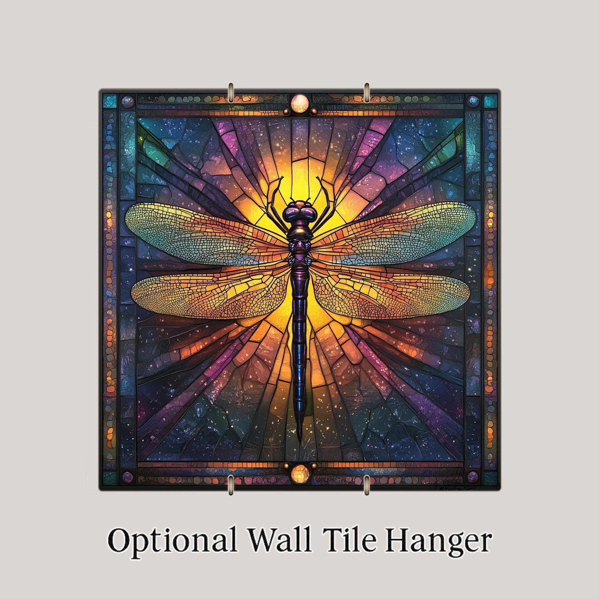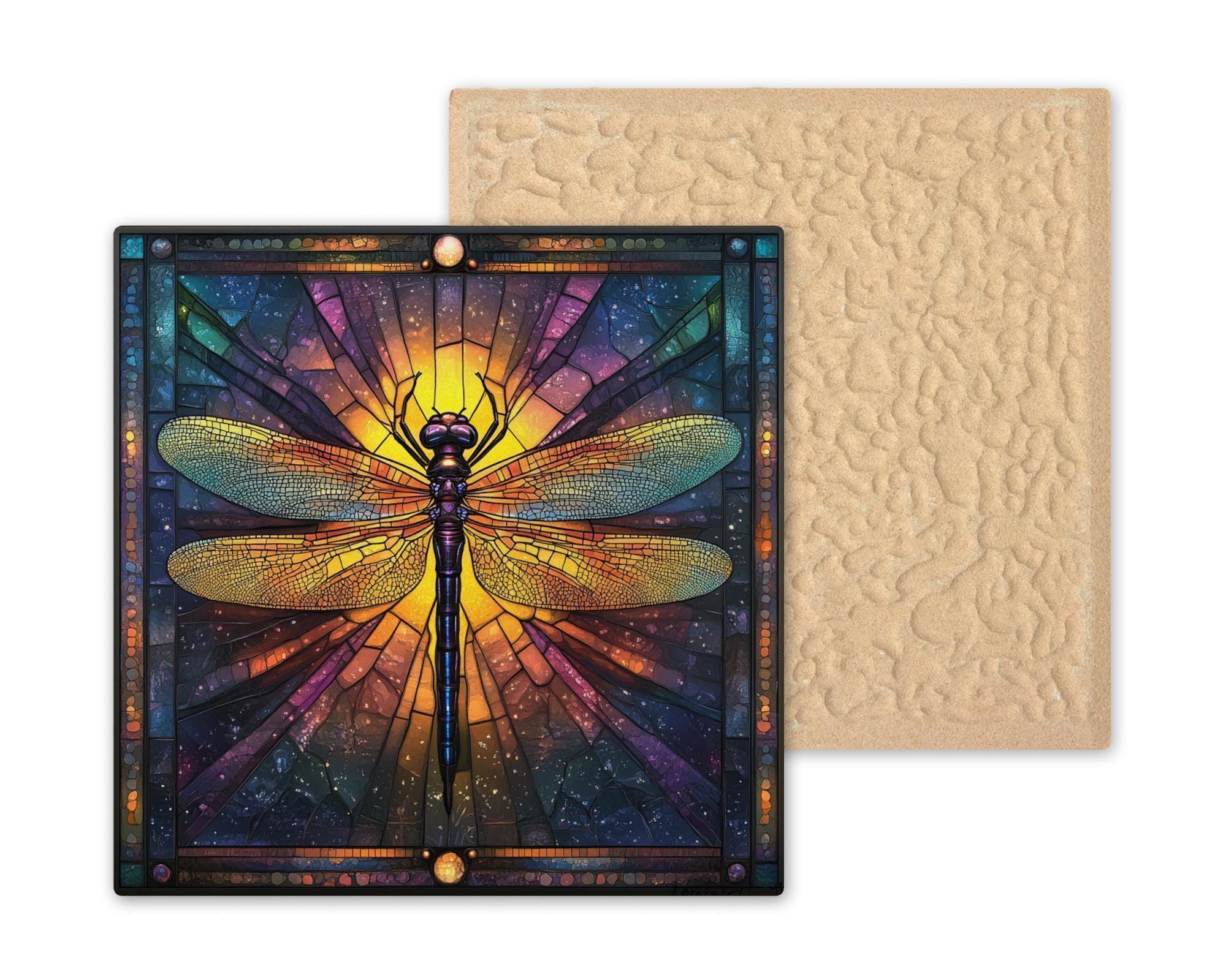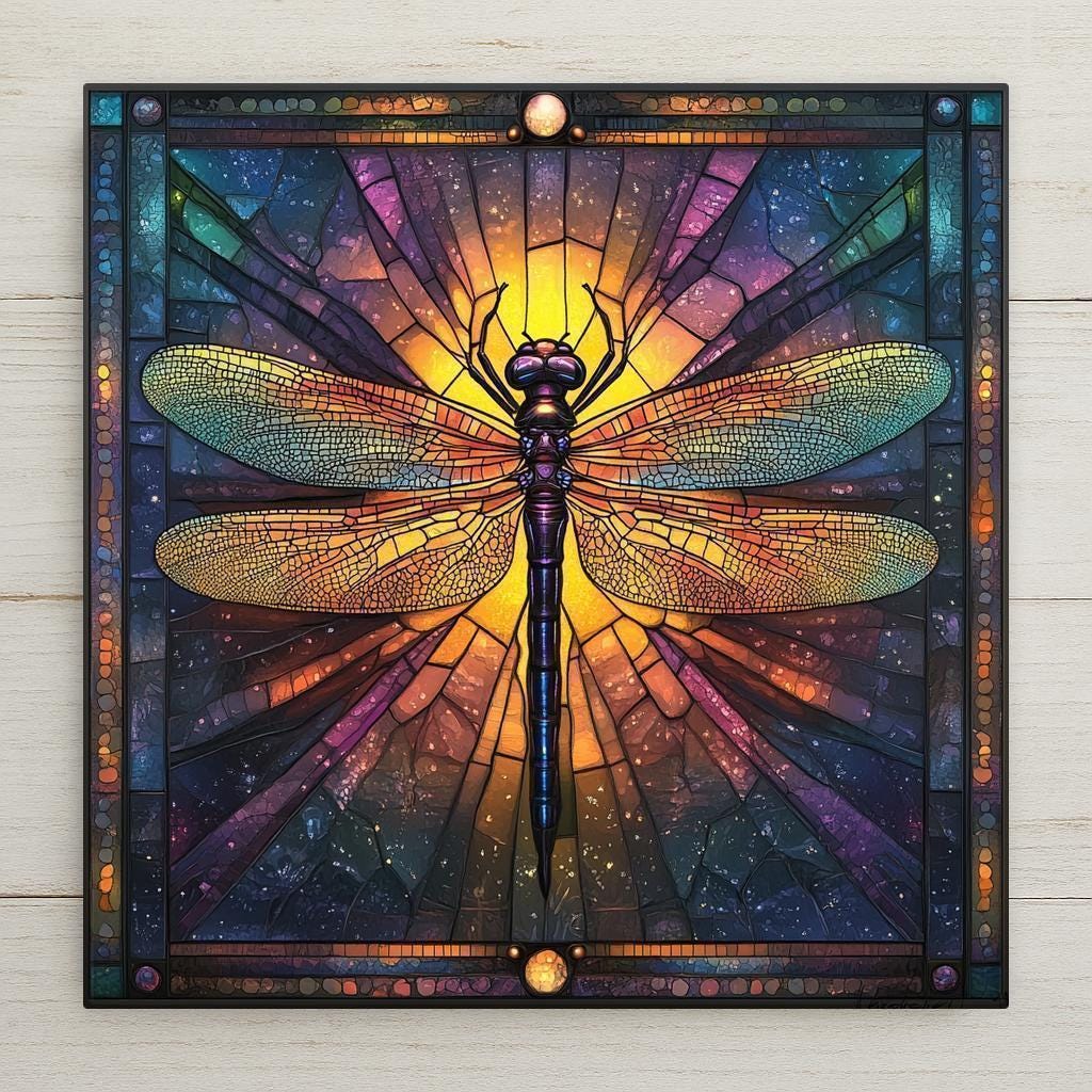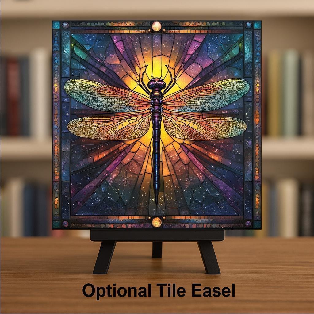 Perfect for eclectic spaces, nature-themed rooms, or cosmic galleries, this tile fits a wide range of decor styles. Whether you're updating a meditation space or gifting a friend who loves insects and spiritual symbolism, this dragonfly tile is a radiant choice.