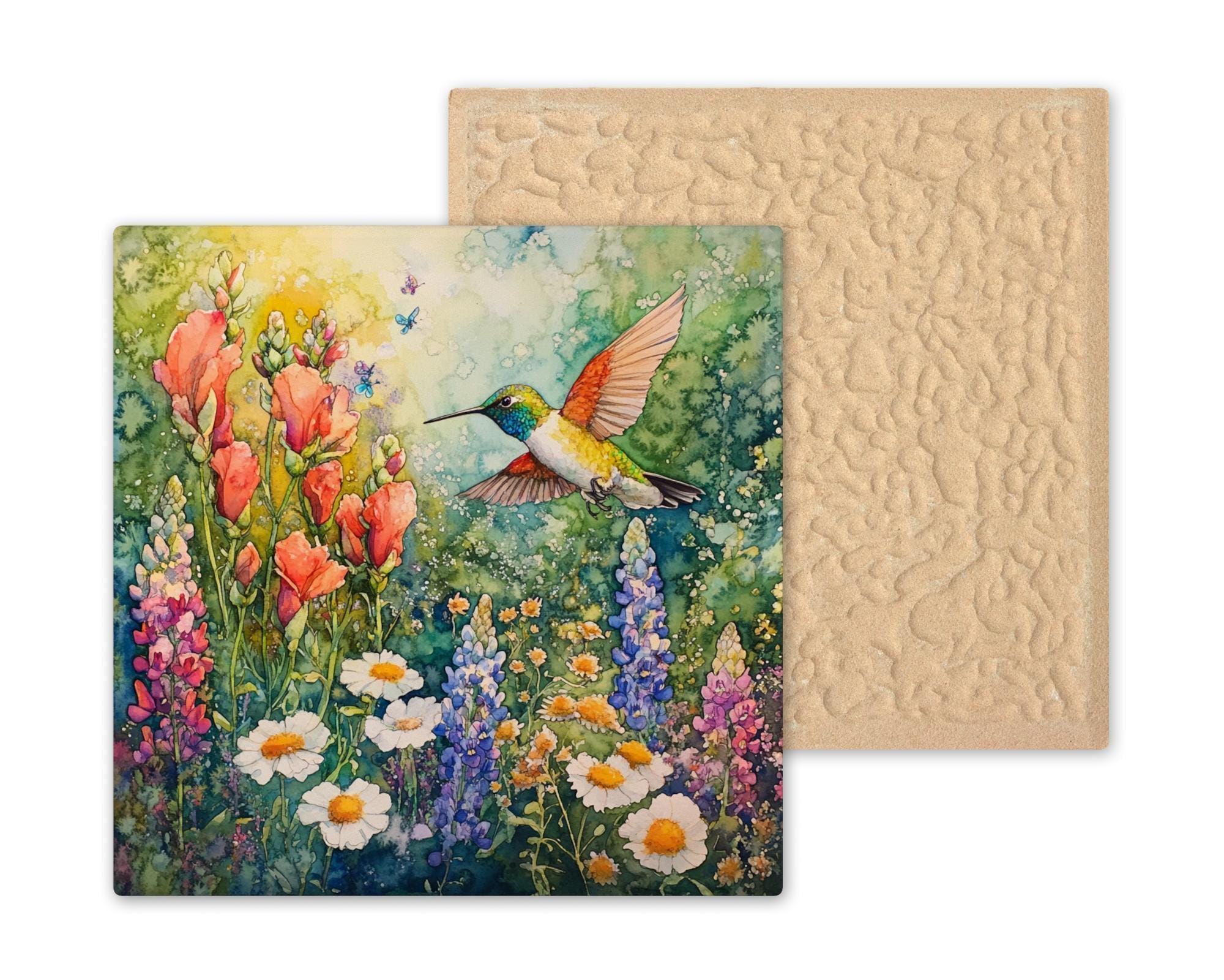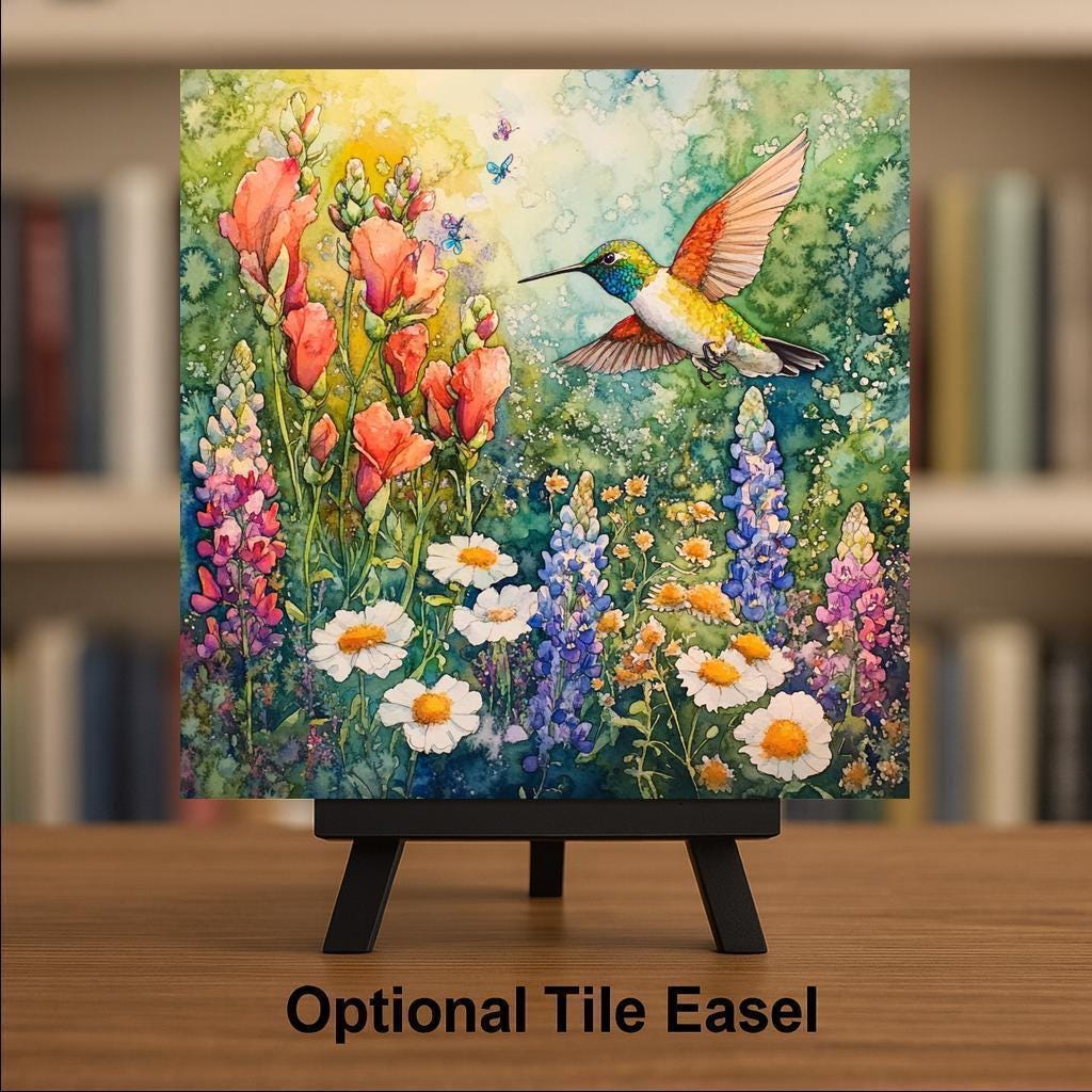 Make every day feel like a walk in a blooming field with this enchanting hummingbird and wildflower ceramic tile. Handmade charm meets watercolor artistry for a timeless gift or decor piece.