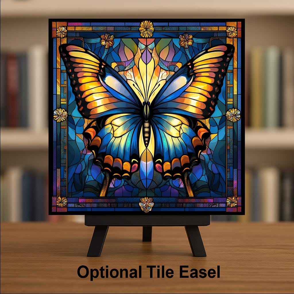 Whether you're decorating a creative space, gifting a loved one who adores butterflies, or brightening a hallway, this tile makes a radiant statement. The luminous color palette and winged subject represent transformation, freedom, and joy—ideal for housewarmings, birthdays, or personal inspiration.