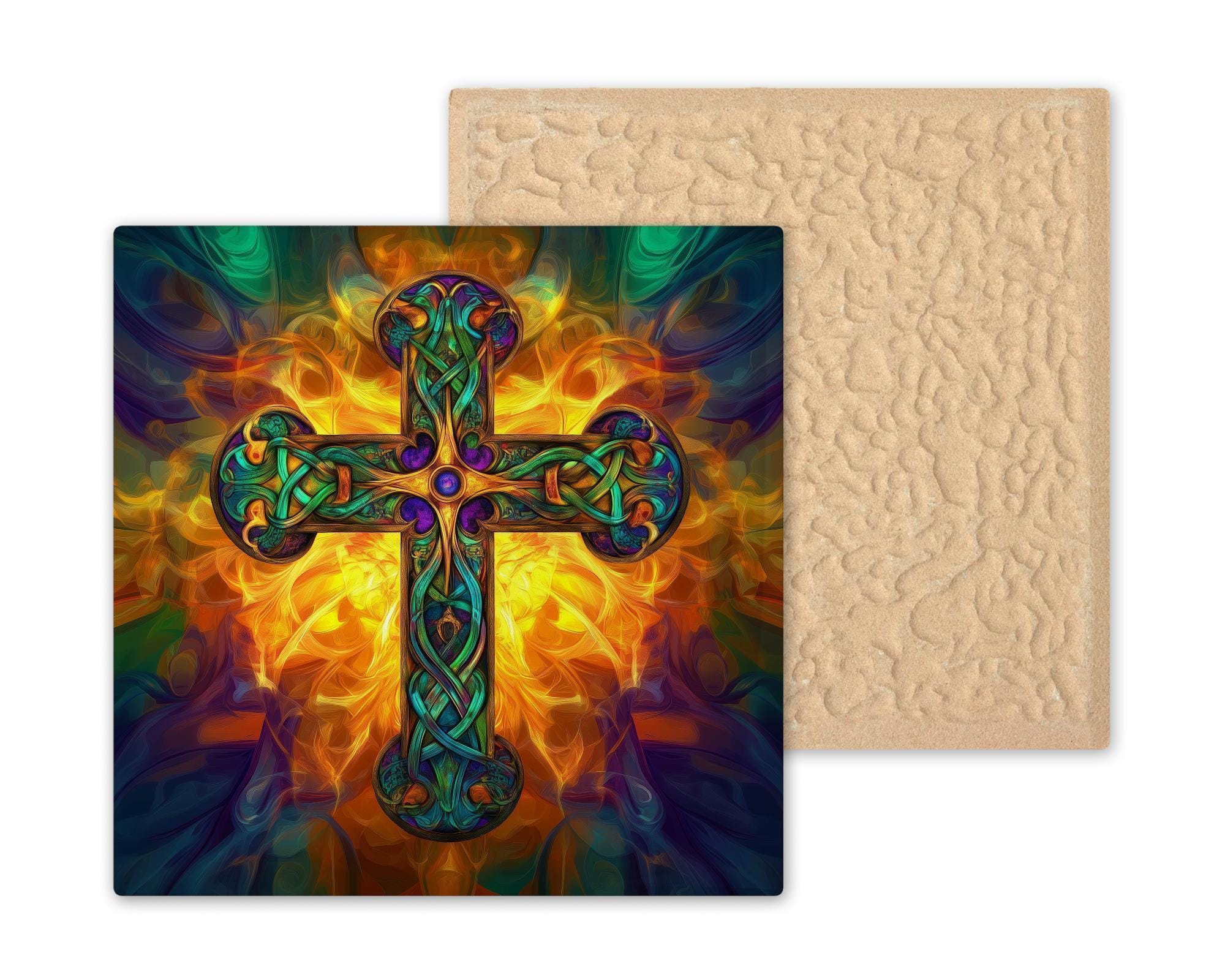 Let this tile illuminate your home with beauty, history, and the powerful symbolism of the cross reborn in fire and light.