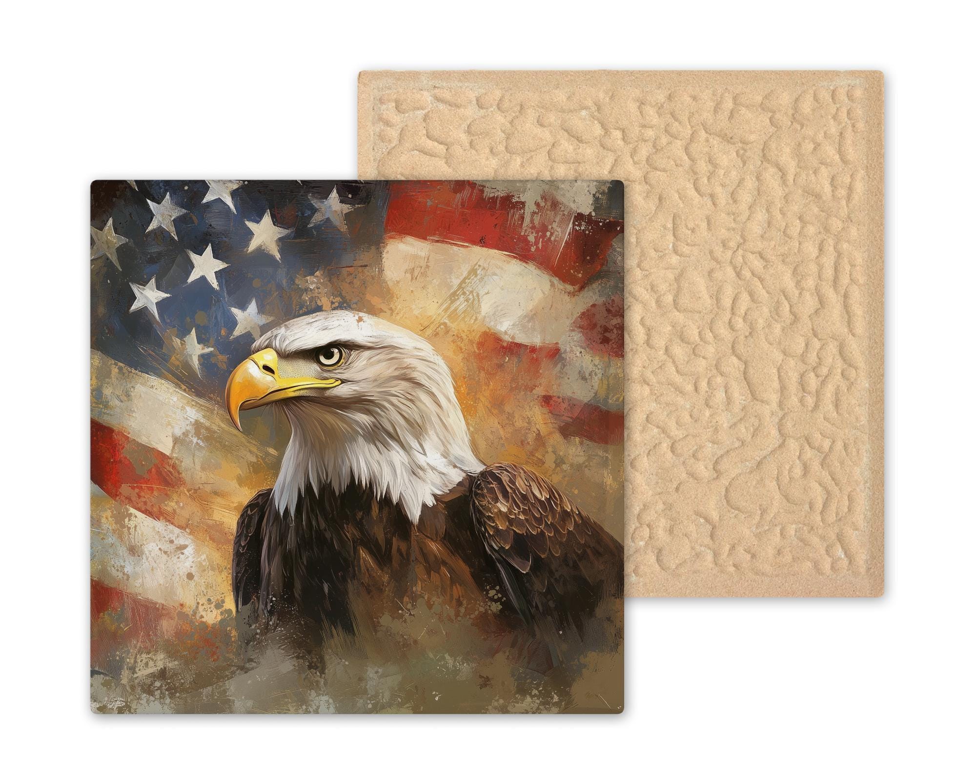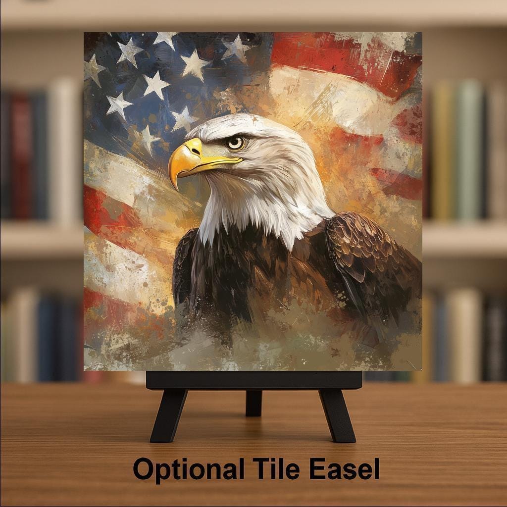 Ideal for Memorial Day, Veterans Day, July 4th, or everyday home decor, this piece is perfect for honoring loved ones who’ve served or expressing pride in American values. The detailed eagle expression and brushstroke flag background make this tile feel alive with movement and purpose.