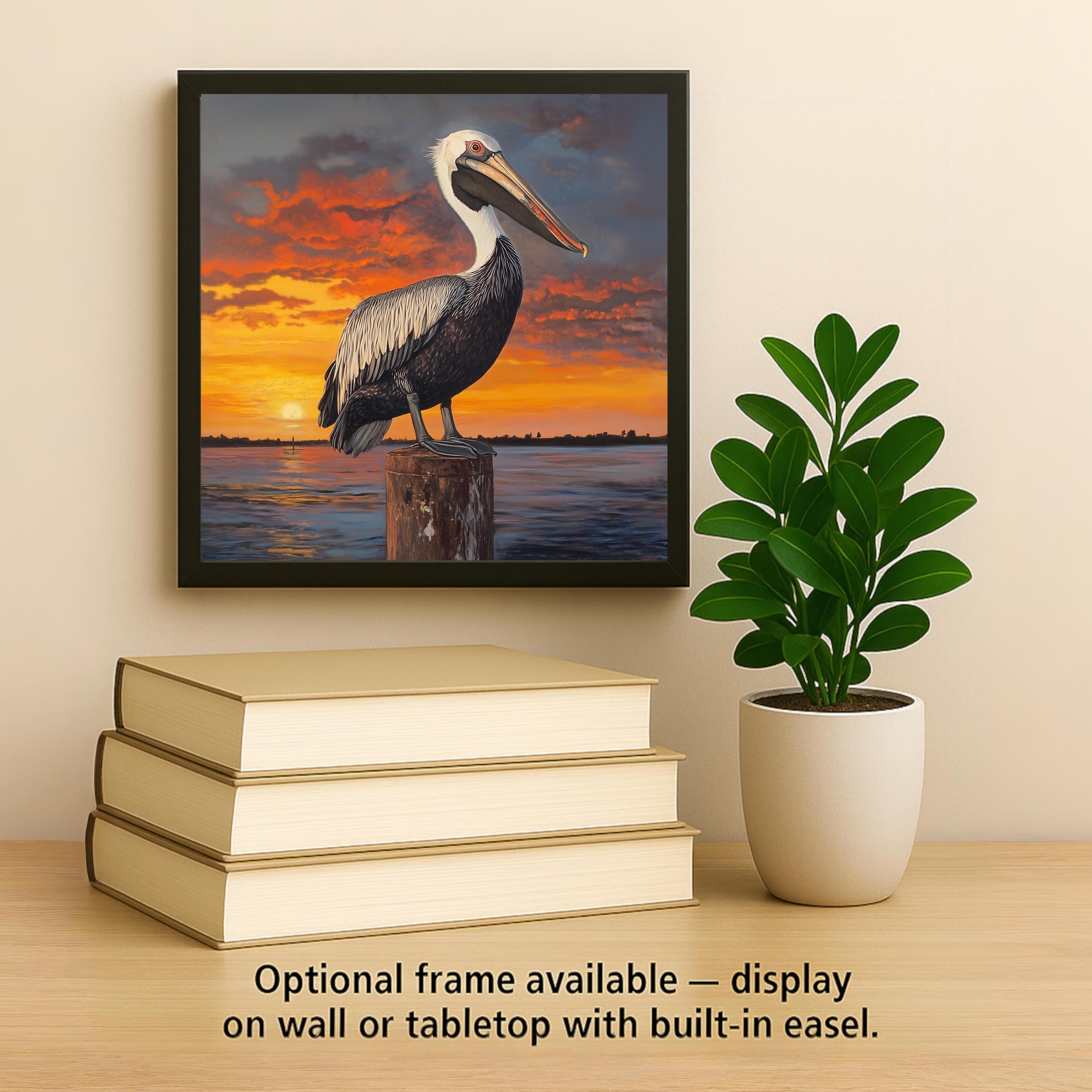 This wildlife-inspired artwork brings the rhythm of the sea to your home. The pelican’s lifelike detail and the glowing hues of the sky evoke evenings spent near the ocean—whether on the dock, a coastal porch, or a quiet shoreline. It’s perfect for nautical-themed bathrooms, beach cottages, or ocean-inspired kitchens.