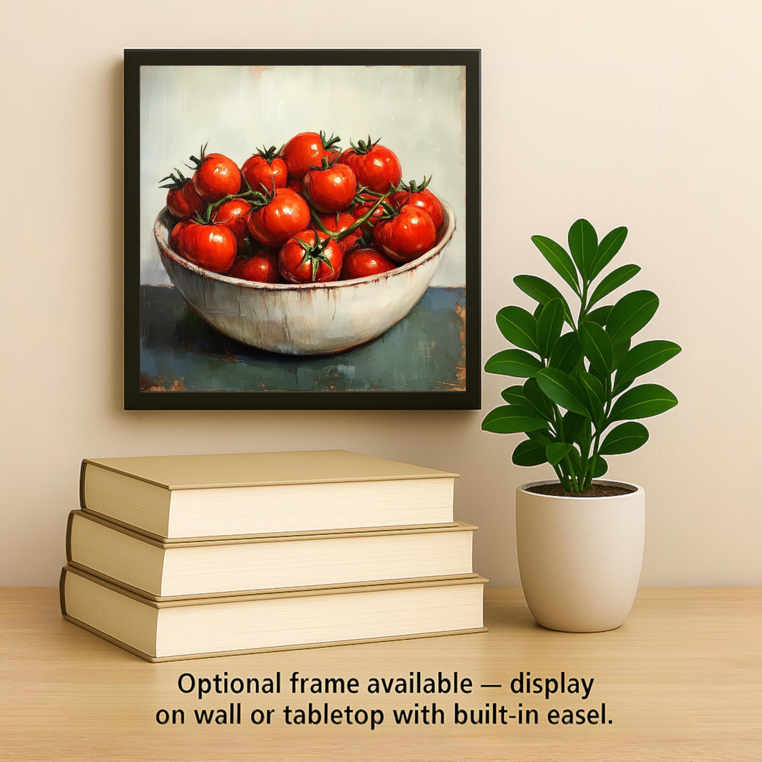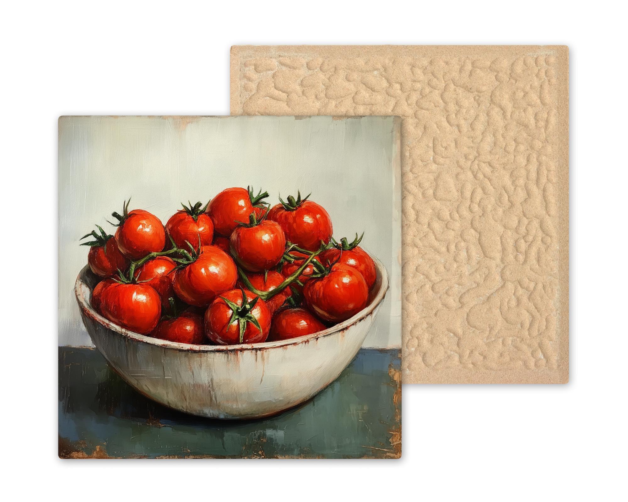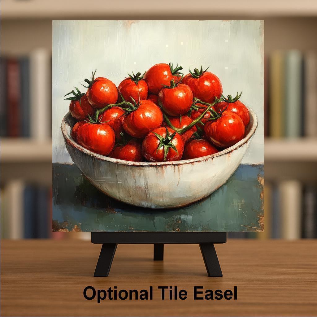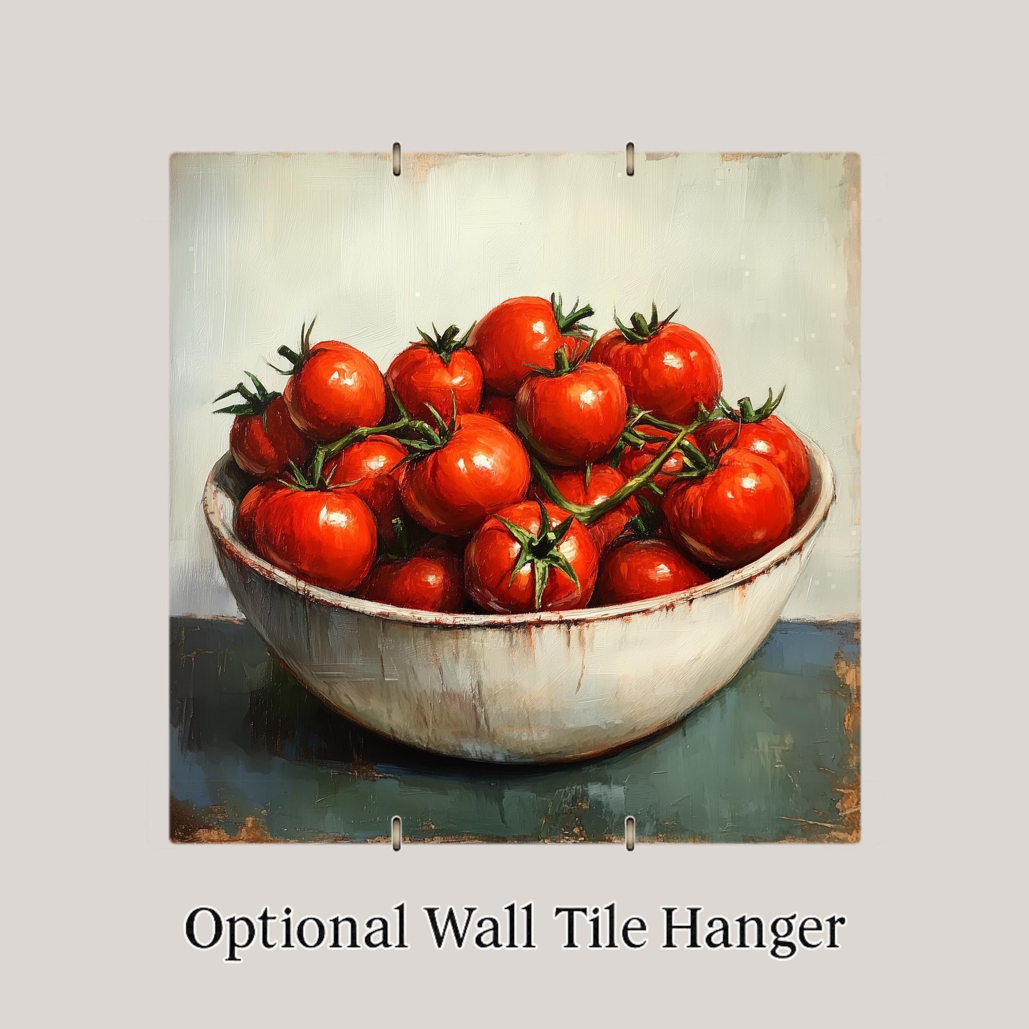 Bring the harvest home with this Rustic Tomato Bowl Ceramic Tile, a vintage-style artwork that’s perfect for any farmhouse kitchen or cottage-style decor. The vibrant red tomatoes, painted in a classic still life style, sit invitingly in a rustic bowl that evokes simpler times and garden-fresh abundance. Whether you use it as wall art, backsplash tile, or counter décor, it brings natural warmth to your home.