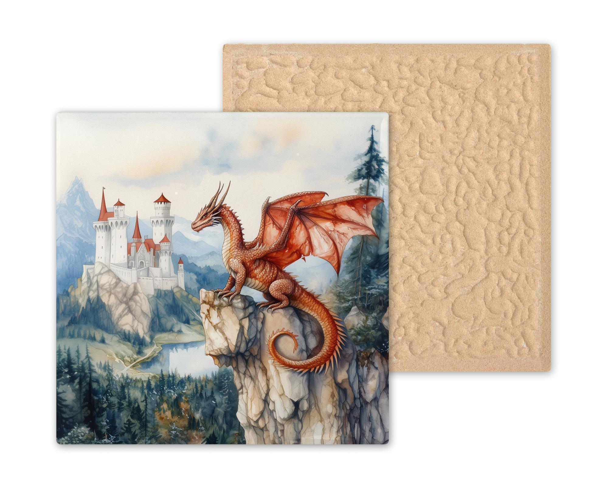 Whether used as a standalone piece or part of a themed fantasy wall, this dragon and castle tile brings elegance, color, and storytelling to your home decor.