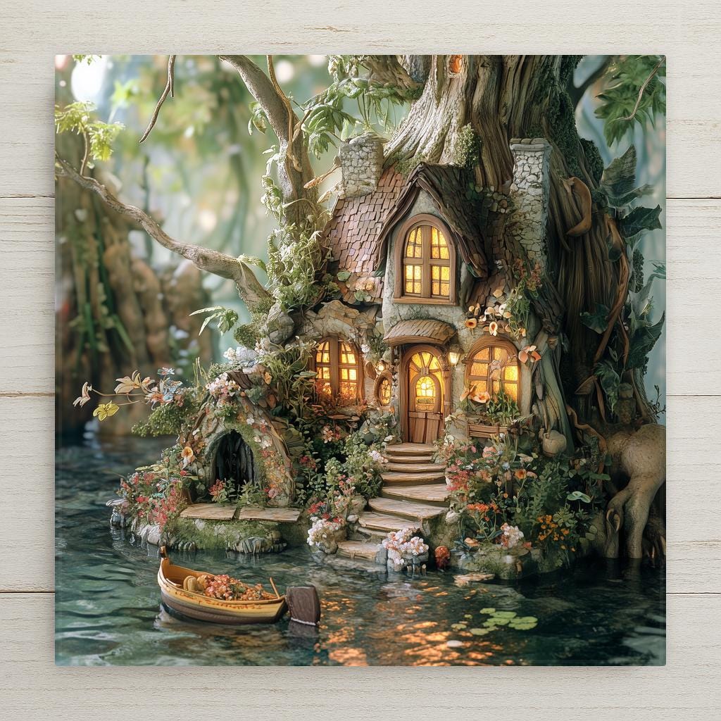 It’s an artful addition to any cottage-inspired decor. Place it in an entryway to greet visitors with wonder, use it in a nursery for a touch of gentle magic, or make it part of your seasonal decorating. The palette is rich yet gentle, with forest greens, golds, and sepia tones that match both rustic and whimsical themes.