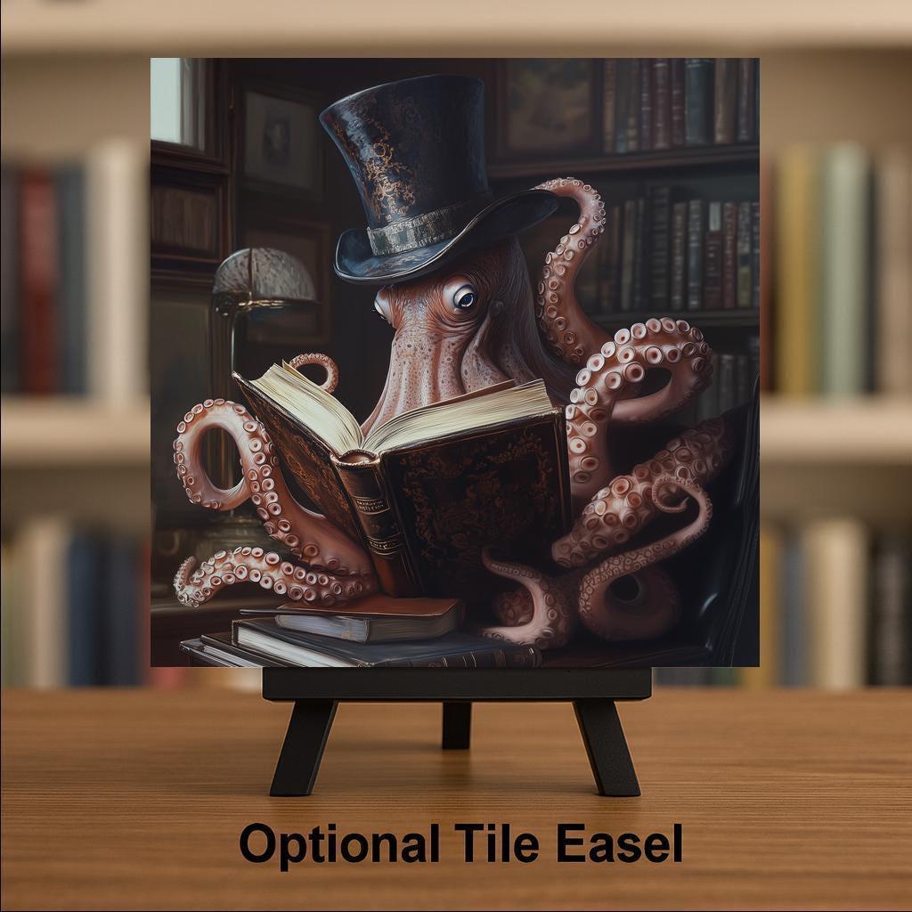This tile is perfect for fans of literature, ocean creatures, steampunk aesthetics, and quirky decor. Its dark, moody tones make it a great addition to vintage-inspired spaces, book-themed rooms, or eclectic home libraries. It also makes a hilarious and thoughtful gift for bookworms and marine biology enthusiasts alike.