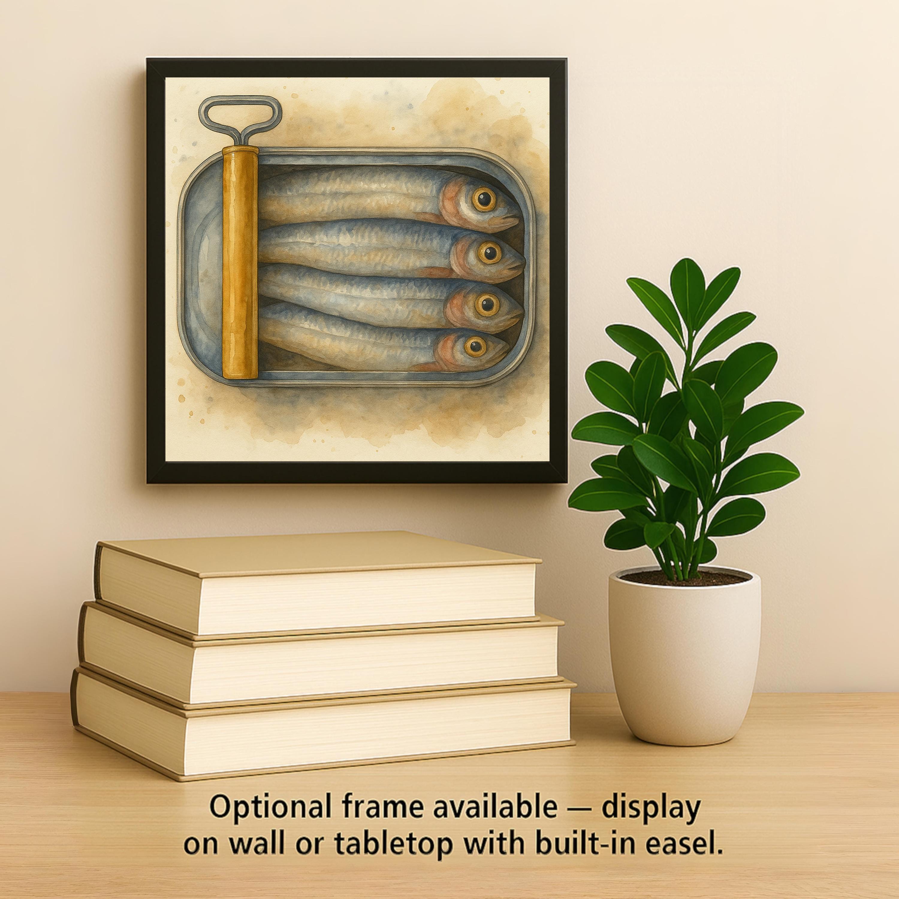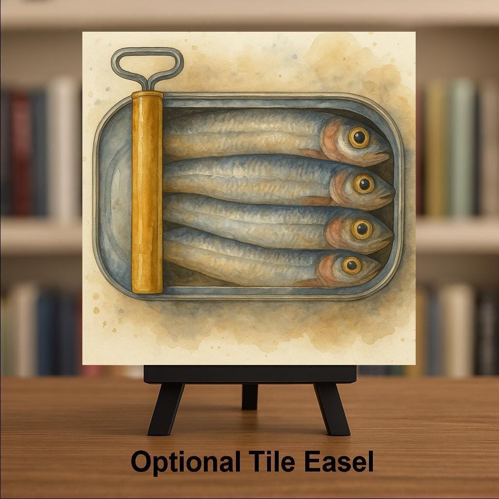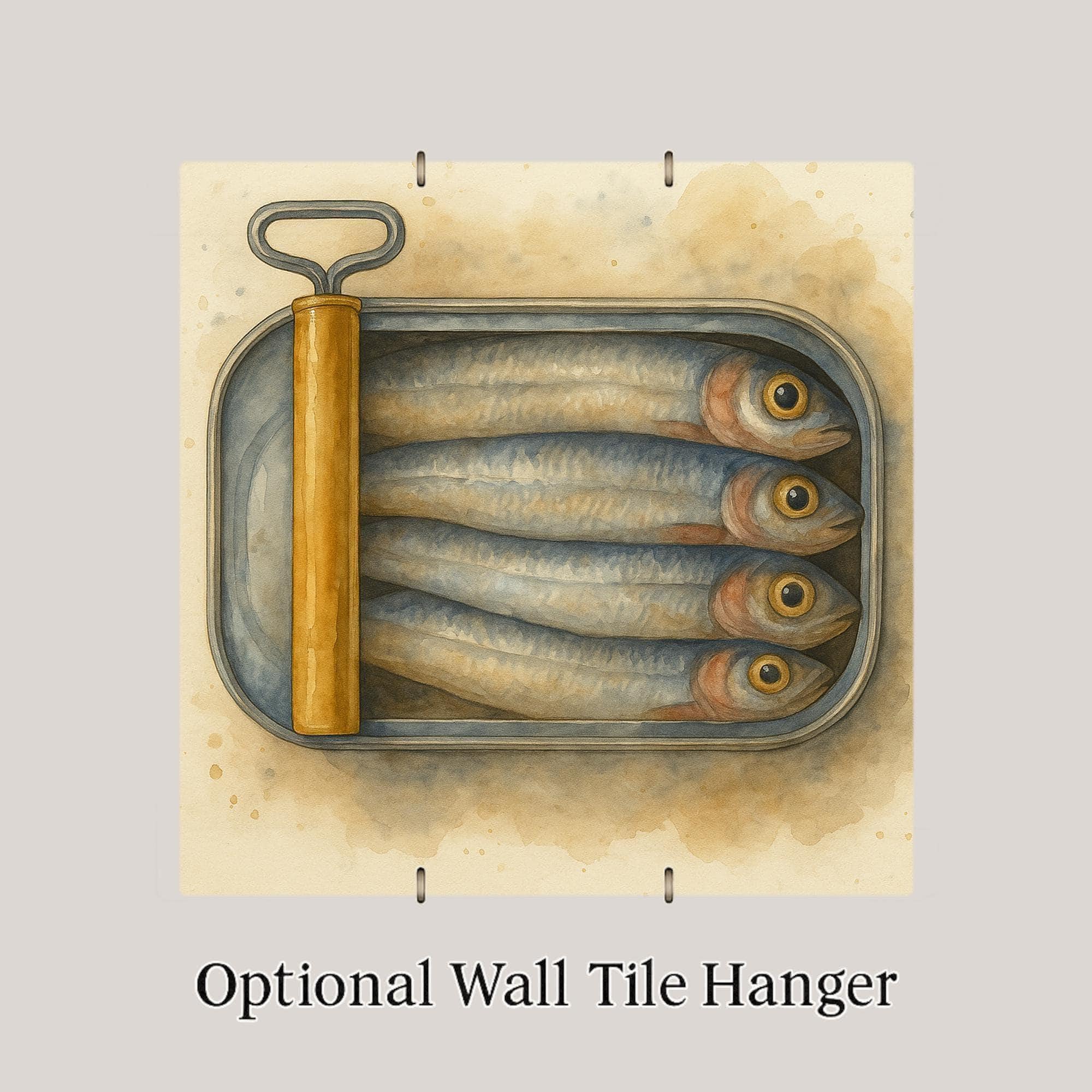 Pair it with other culinary-themed tiles for a whimsical display or let it stand alone as a playful reminder of your love for the sea (or sardines!). This art tile serves as both decor and statement, making it a standout in any retro or coastal interior.