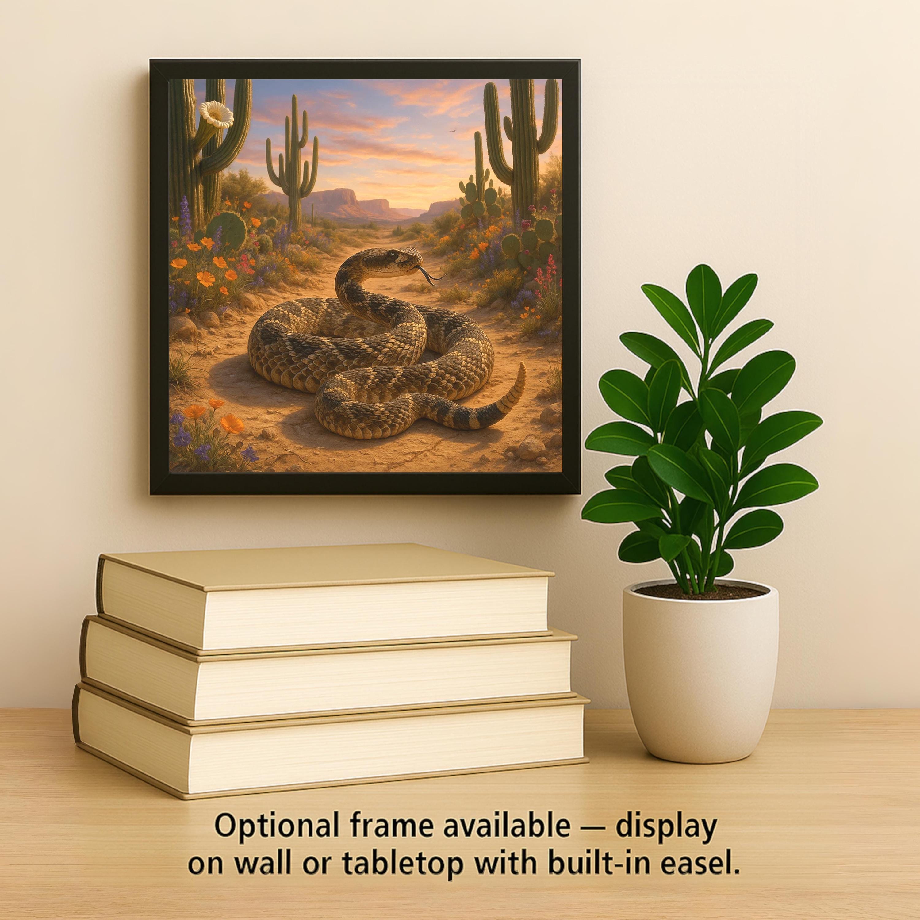 Choose your preferred finish: add a tile wall hanger to hang as art, a tile stand for shelf display, or cork backing to use as a functional trivet or coaster. This tile also makes a fantastic gift for outdoor lovers, herpetologists, and folks with a deep love of the desert’s unique charm.