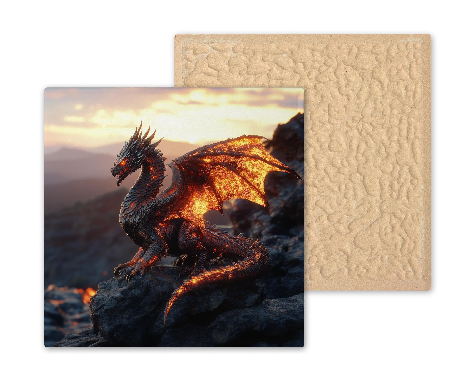This tile makes a memorable gift for fantasy fans, dragon lovers, RPG gamers, and admirers of medieval-inspired art. The dragon’s heroic silhouette and glowing lava-infused details create a strong visual presence that adds power and atmosphere to any home decor. It pairs well with medieval-themed rooms, fantasy art collections, and dramatic high-fantasy setups.