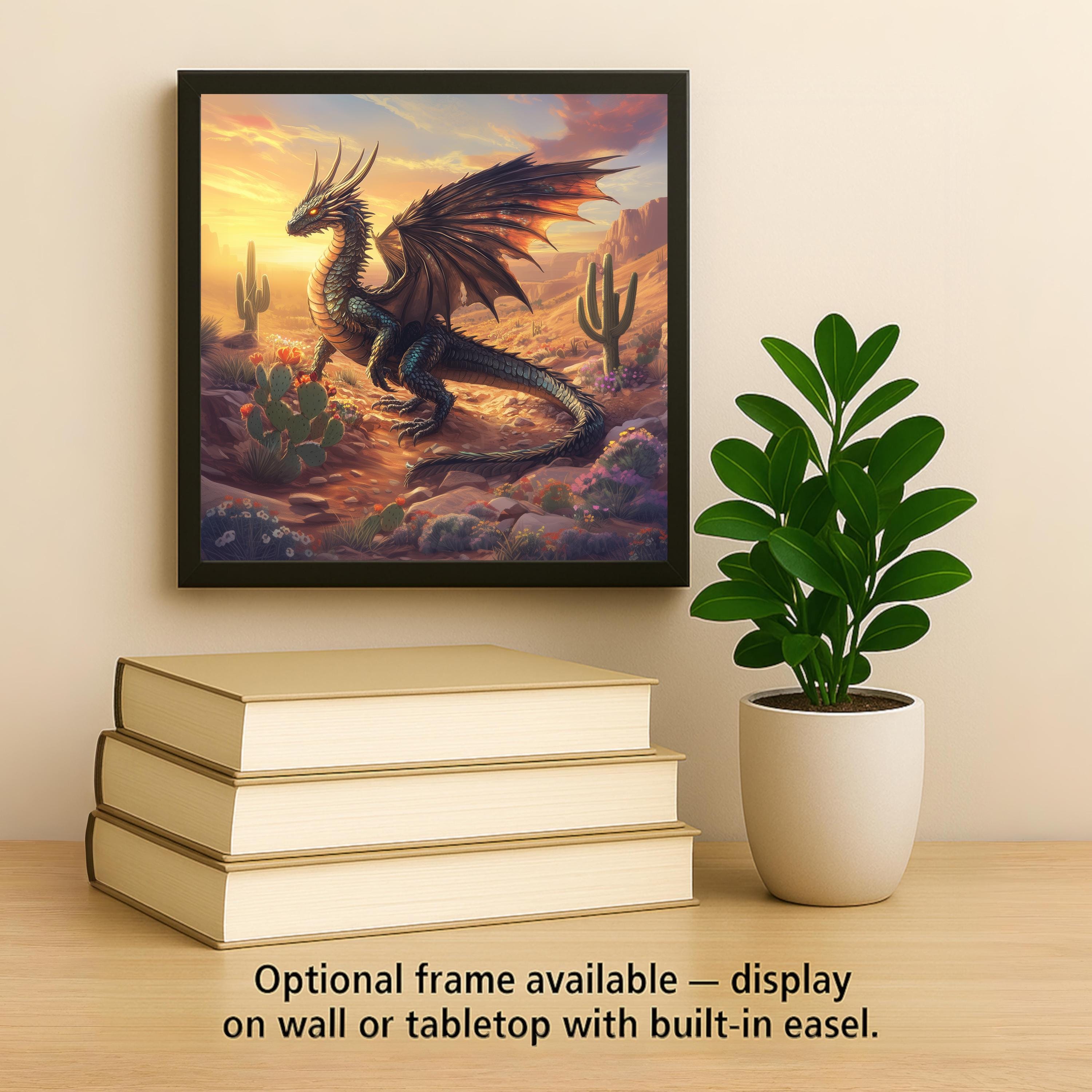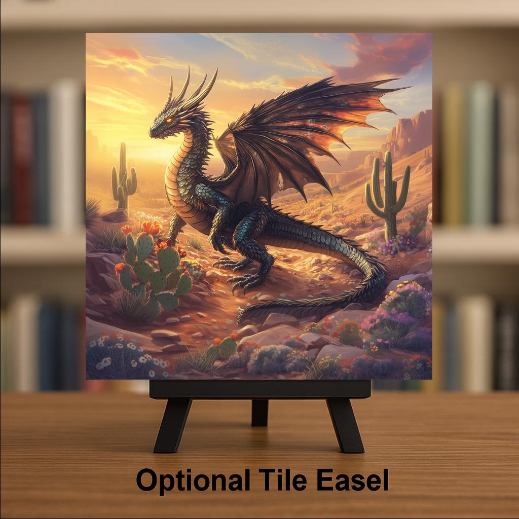 Add fiery fantasy to your decor with this Southwestern dragon ceramic tile, a perfect blend of mythical creature design and desert elegance. This powerful artwork features a stunning dragon perched among blooming cactus and sandstone cliffs at sunset, its wings glowing with celestial colors. It’s a show-stopping piece for anyone who loves fantasy, gothic motifs, or desert landscapes.