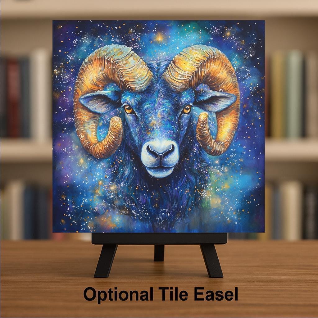 Perfect for spiritual spaces, fire sign altars, or zodiac-inspired homes, this Aries tile channels individuality, ambition, and strength. If you're drawn to themes of empowerment and bold beginnings, this tile belongs in your collection.