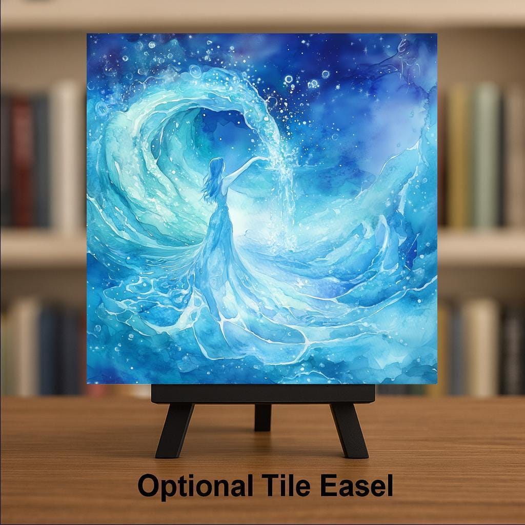Display this astrology tile in your reading nook, studio, or living room for an eye-catching accent full of personality. The artwork makes a thoughtful birthday gift for Aquarius friends, family, or anyone inspired by the stars. It's not only decorative, but a unique conversation starter too. With optional features including a tile wall hanger, easel tile stand, or cork backing, it’s easy to customize the look to match your vibe. Whether you’re building a zodiac-themed gallery or looking for the perfect personal gift, this Aquarius ceramic tile adds astrological beauty and water-bearer wisdom to any setting.