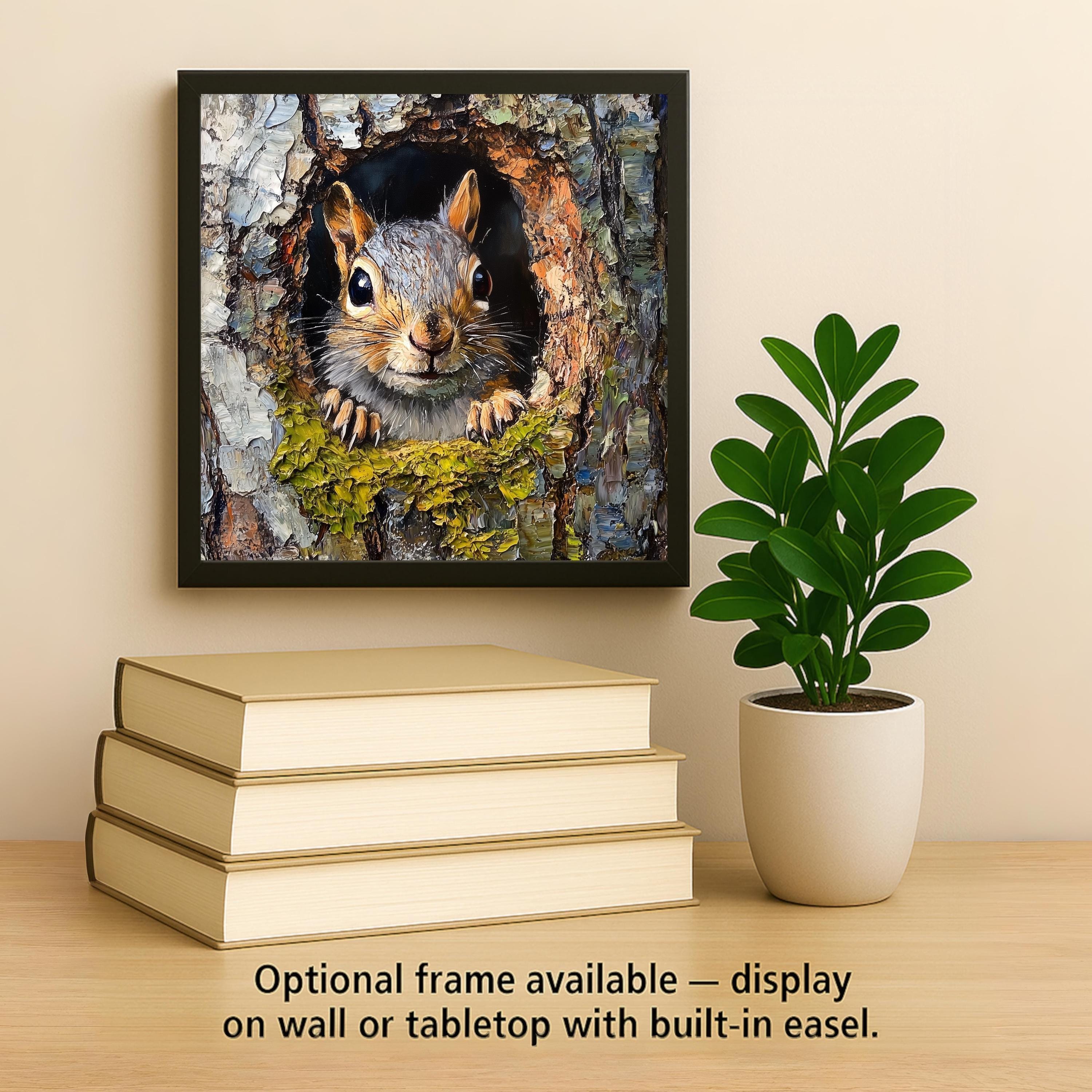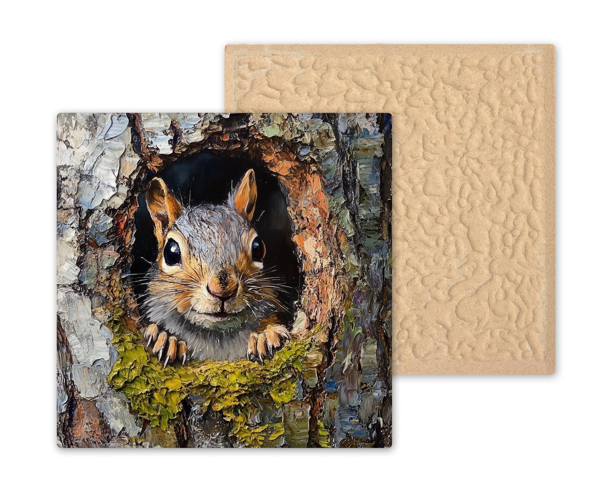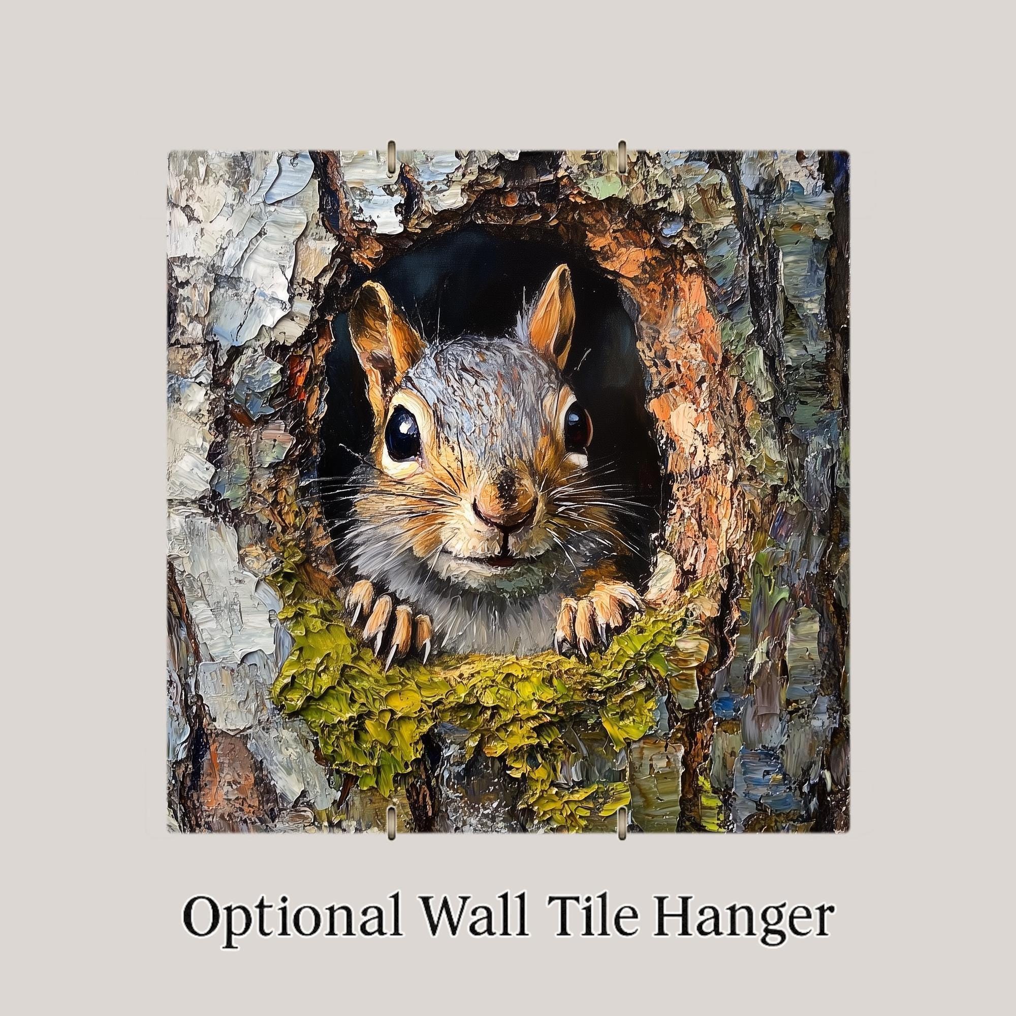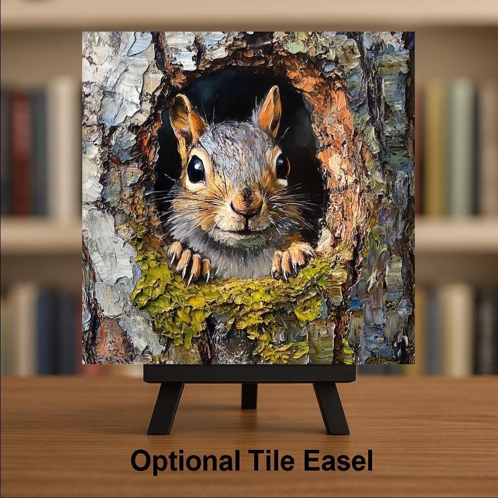 Perfect for wall art, kitchen trivets, or rustic home accents, this tile fits easily into cozy, cabin-inspired decor. Whether you're a nature lover, wildlife enthusiast, or simply love woodland creatures, this piece adds heart to your home. Its vivid detail and inviting expression make it an ideal gift for squirrel fans and animal lovers alike.