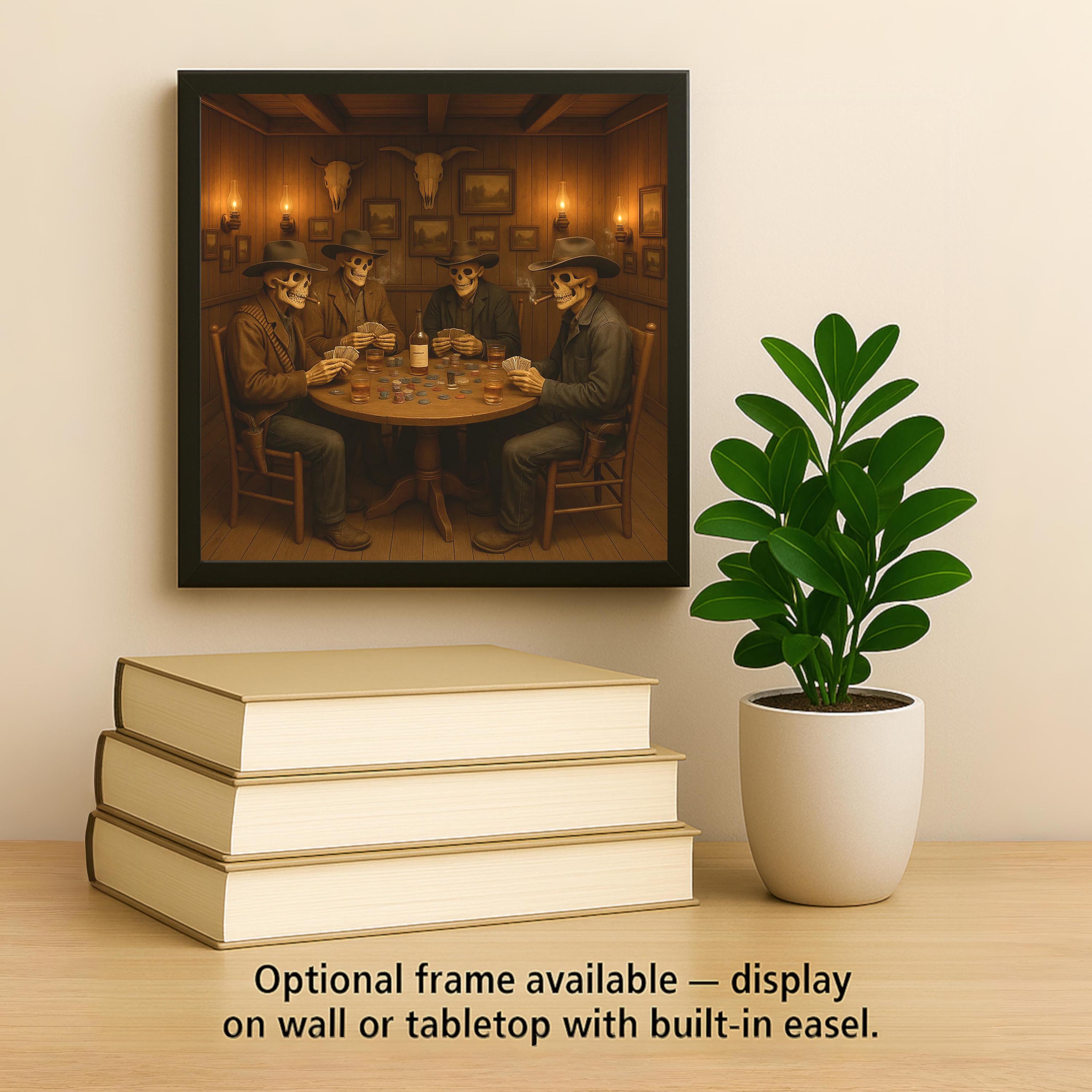 Hang it with the tile wall hanger, display it upright on a shelf with an easel tile stand, or use the optional cork backing for functional decor. It makes a great centerpiece for Halloween parties, game rooms, or western-themed bars. This tile is also a hit with poker players, Halloween collectors, and cowboy fans with a sense of humor.