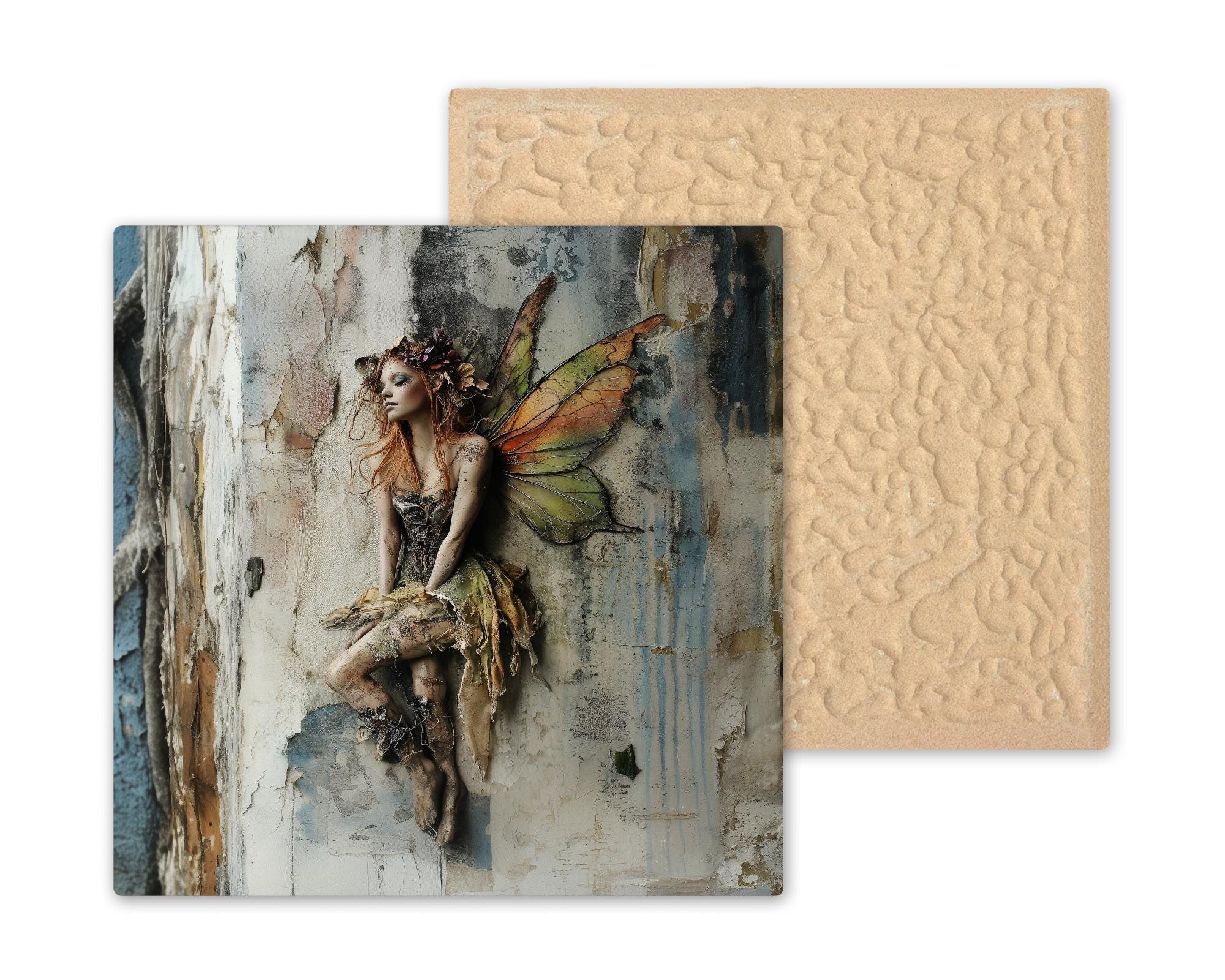 This tile makes a perfect gift for fairy collectors, lovers of rustic fantasy art, and fans of woodland decor. Its soft palette and dreamlike composition make it a charming accent for cozy rooms, creative studios, book nooks, and forest-themed spaces. The combination of worn textures and ethereal character design adds warmth and quiet magic to any home.