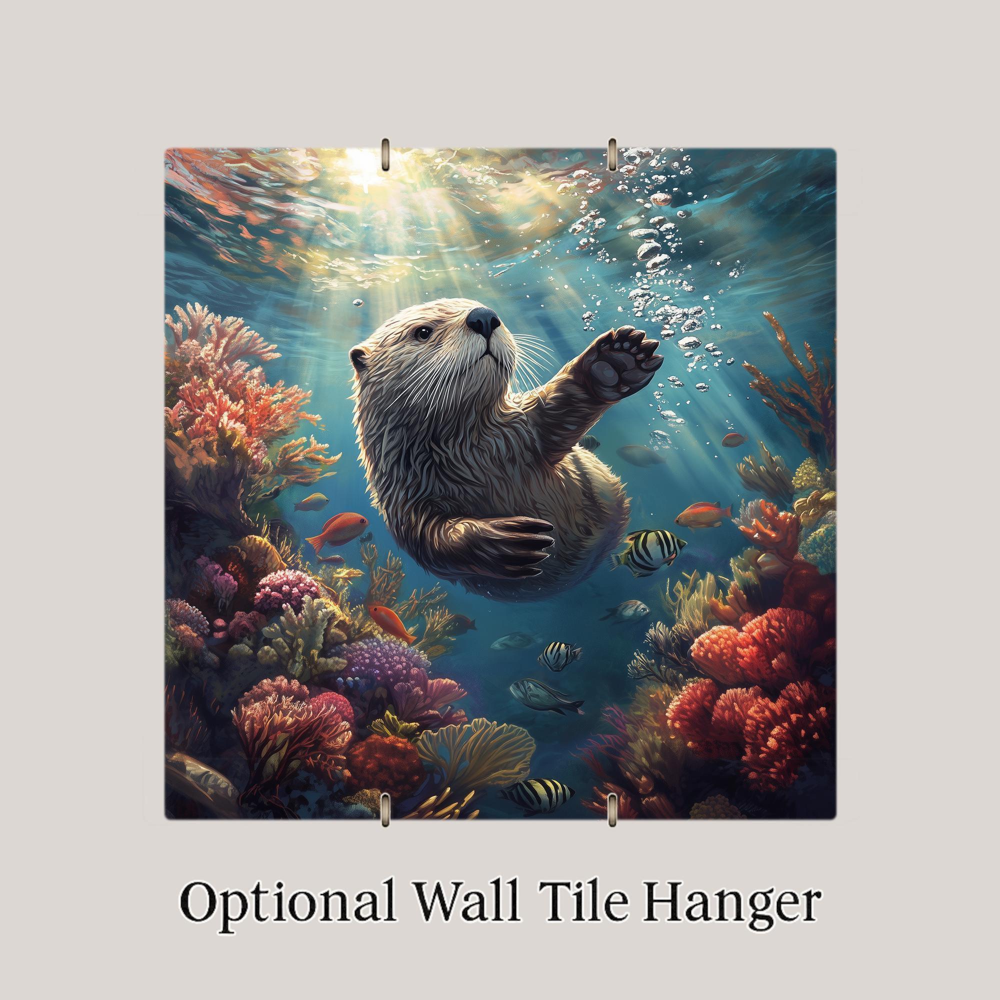 Bring the beauty and playfulness of the sea into your home with this ceramic tile featuring a joyful sea otter swimming through colorful coral reefs. With sunbeams breaking through the water and tropical fish all around, this vibrant underwater scene adds charm and energy to any coastal or ocean-themed room.