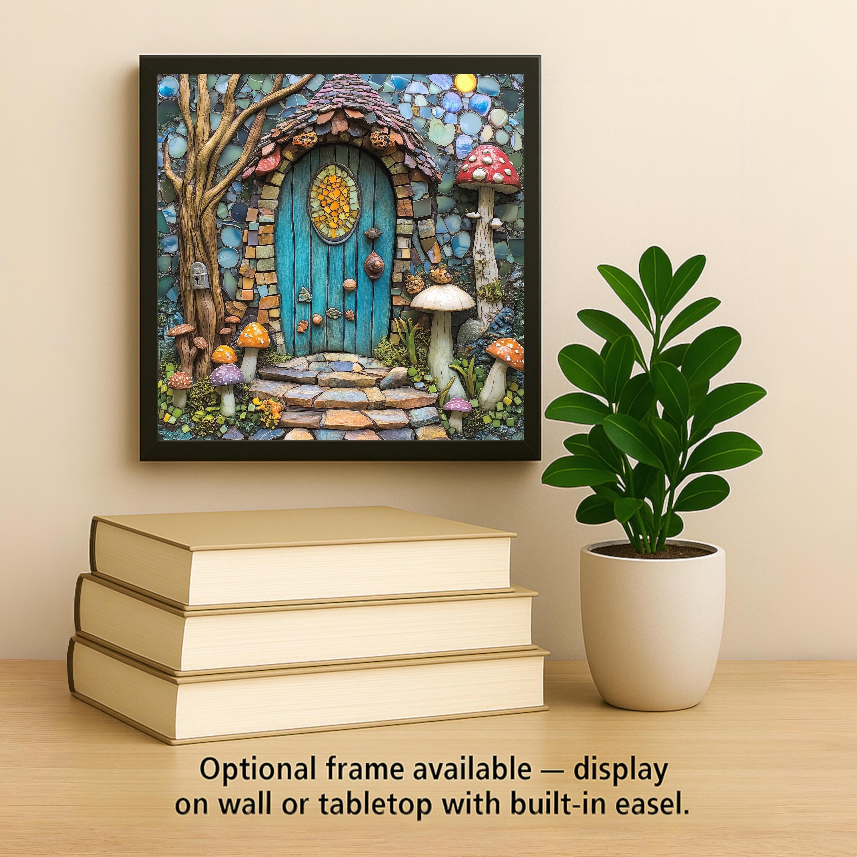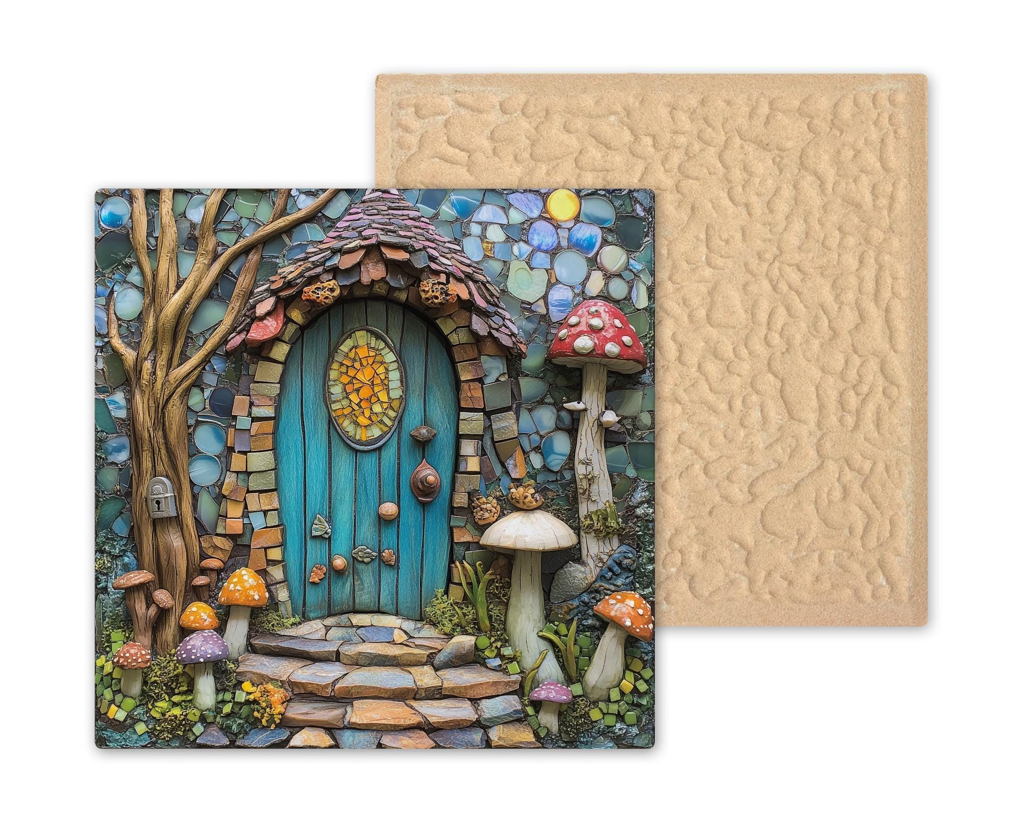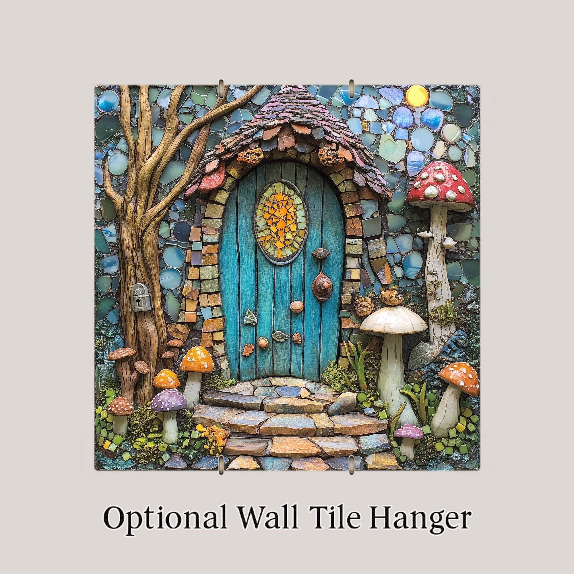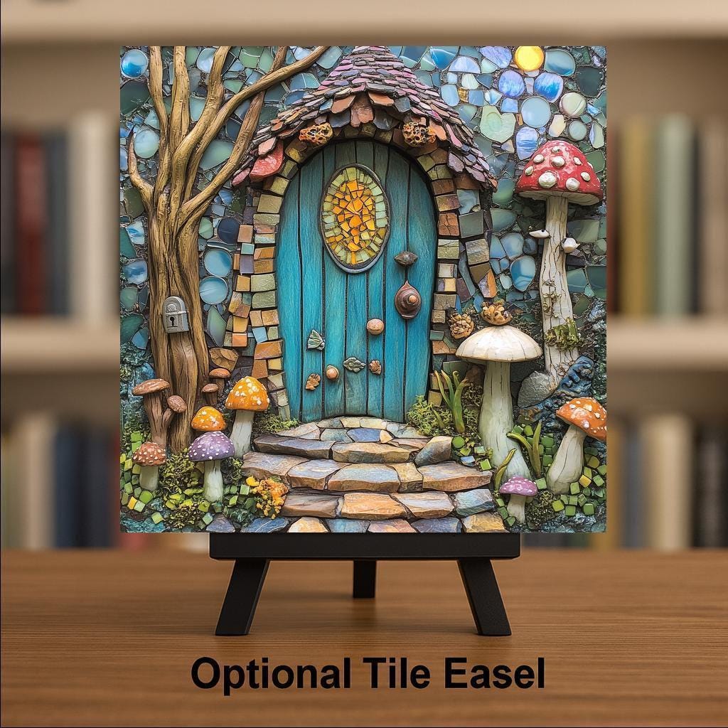 This tile makes an ideal gift for fairy-house lovers, fantasy art fans, mushroom enthusiasts, cottagecore decorators, and anyone who enjoys whimsical home decor. It adds color and charm to bedrooms, kitchens, craft rooms, garden rooms, and cozy cottages. With its magical forest energy and mosaic-inspired details, this piece becomes a delightful centerpiece in any themed space.