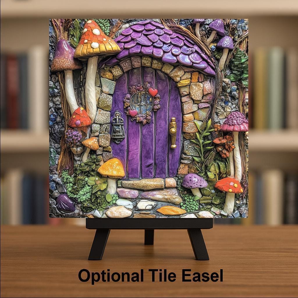 Available with optional tile wall hanger, easel tile stand, or cork backing for a flexible setup. Makes a thoughtful and unique gift for birthdays, housewarmings, or holidays for those who love fairies, mushrooms, or magical escapes. Add a little enchantment to your everyday space with this delightful tile!