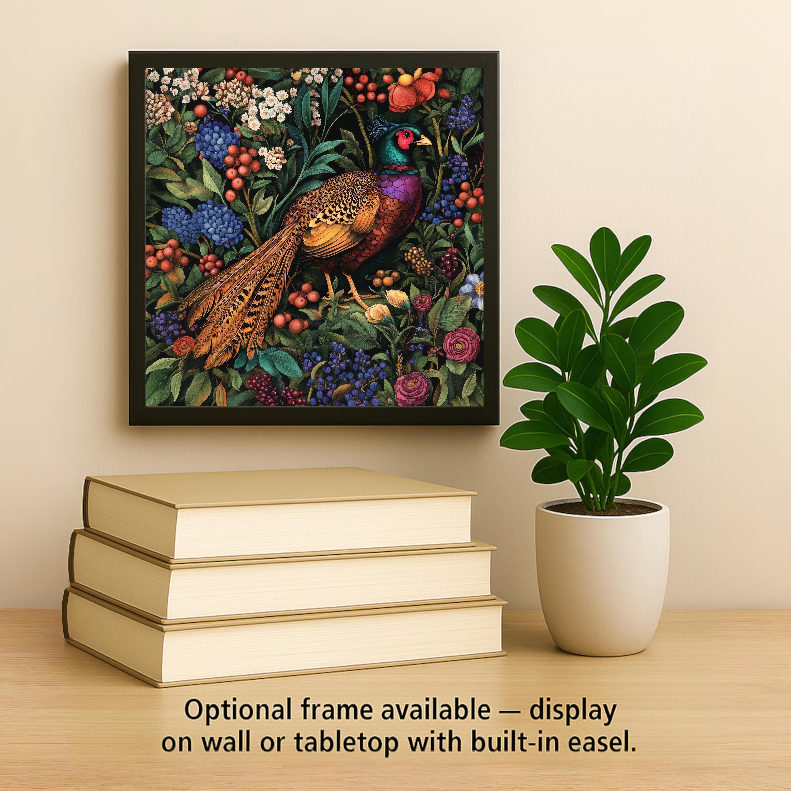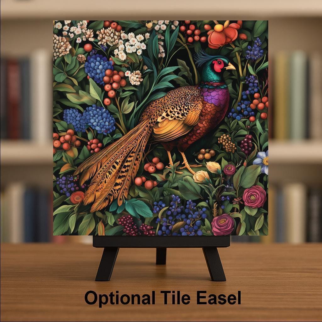 Optional tile wall hanger, easel tile stand, or cork backing lets you style it to suit your space. Whether for a rustic cabin, conservatory wall, or thoughtful nature-themed gift, this tile celebrates the wild beauty of the game bird and the richness of garden life.