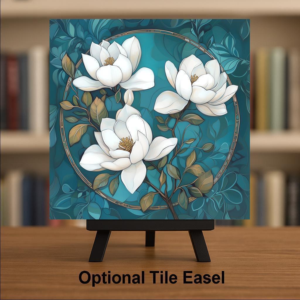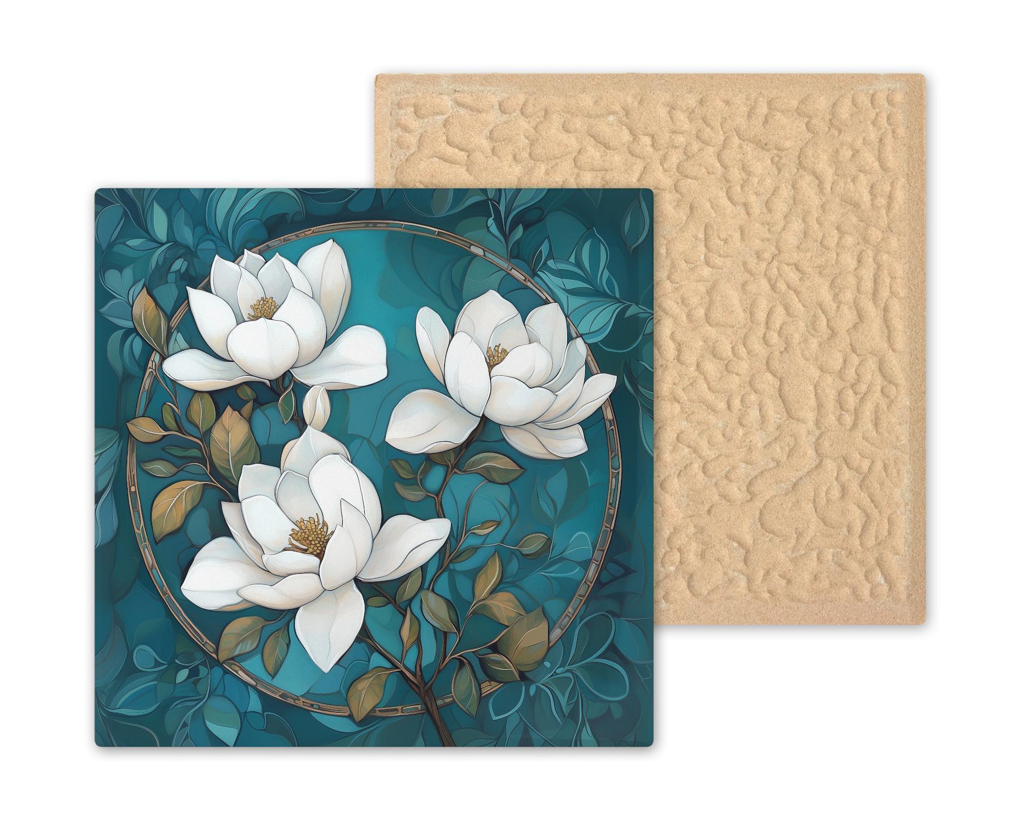 Magnolias symbolize purity and perseverance, making this tile a heartfelt gift for birthdays, anniversaries, or even sympathy occasions. Whether you’re decorating a cottage-style home, vintage-inspired room, or nature-themed space, this floral tile brings softness and sophistication to any setting.