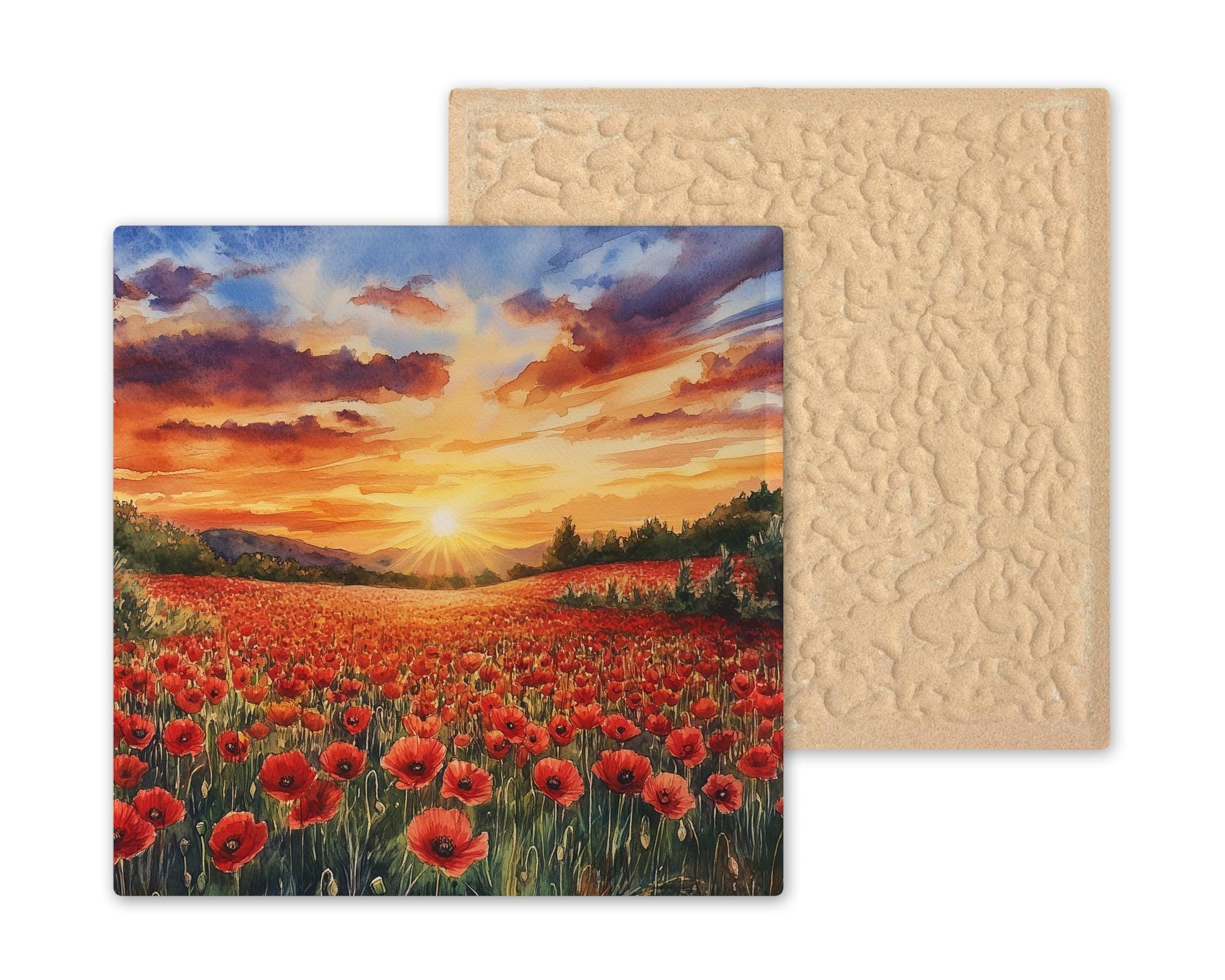 Let your walls bloom with this Red Poppy Field Ceramic Tile, a sunset floral design that brings the gentle magic of wildflowers into your home. With sweeping views of vibrant poppies bathed in golden evening light, this piece captures the poetic stillness of nature’s quiet moments—ideal for cottagecore decor or rustic farmhouse charm.
