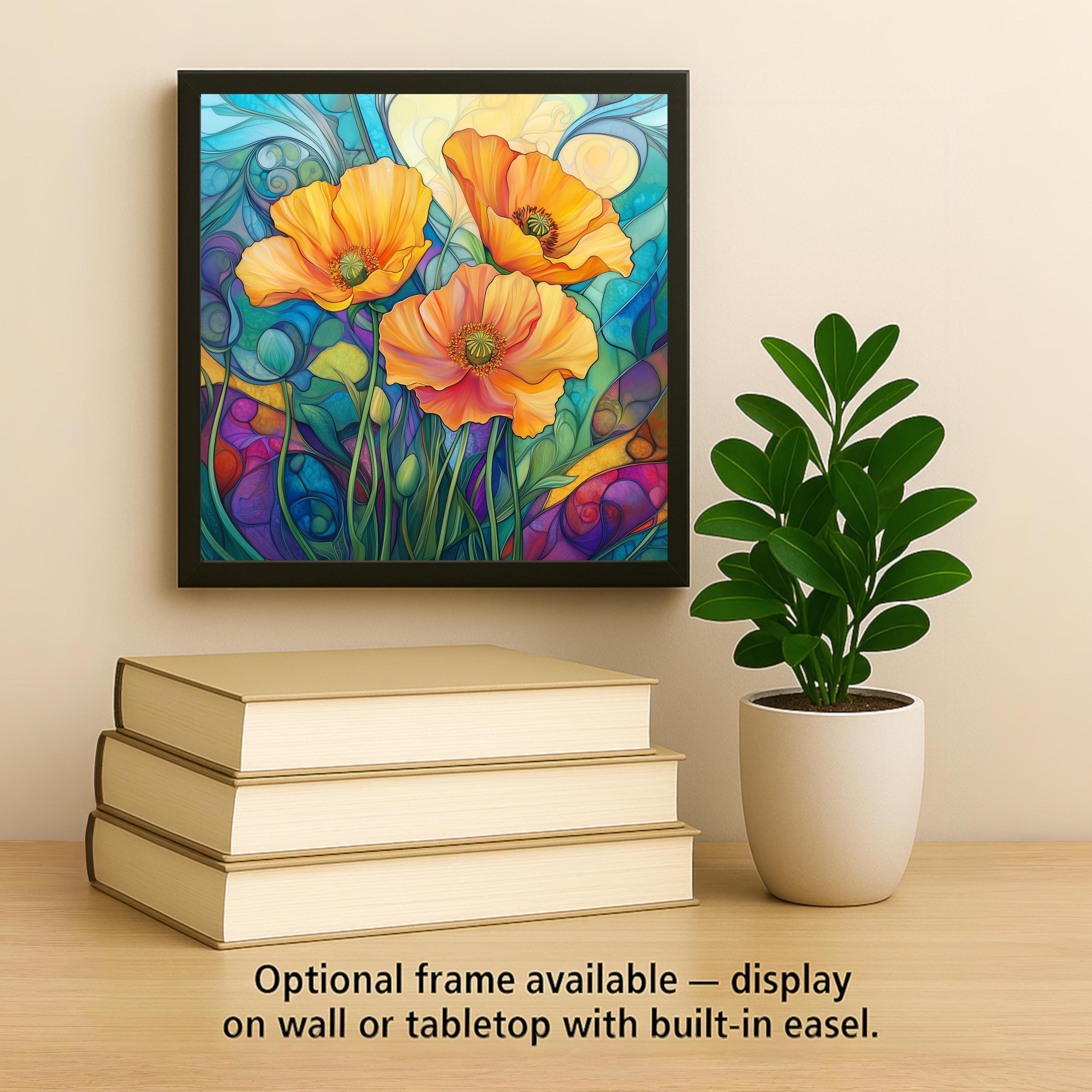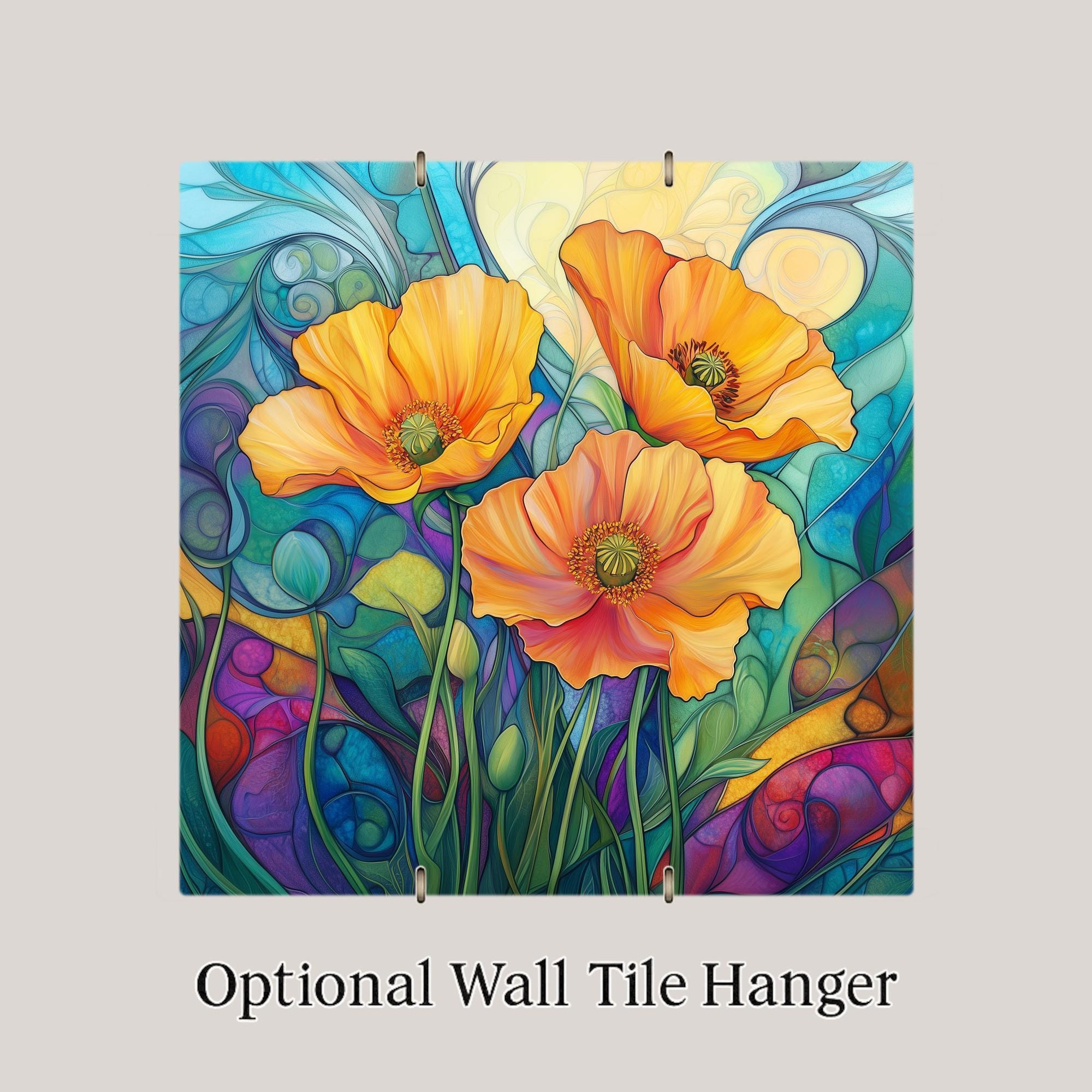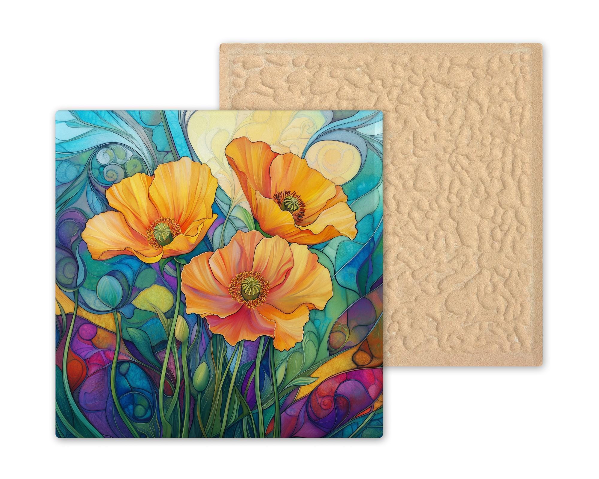 Whether hung on a wall, propped on a shelf, or used as a trivet or coaster, this tile suits both decorative and practical needs. Choose from optional tile wall hanger, easel tile stand, or cork backing to fit your display style. Ideal for garden lovers, flower enthusiasts, or anyone who appreciates the elegance of nature, this piece blends color and craftsmanship in a lasting tribute to the Golden State's beloved state flower.
