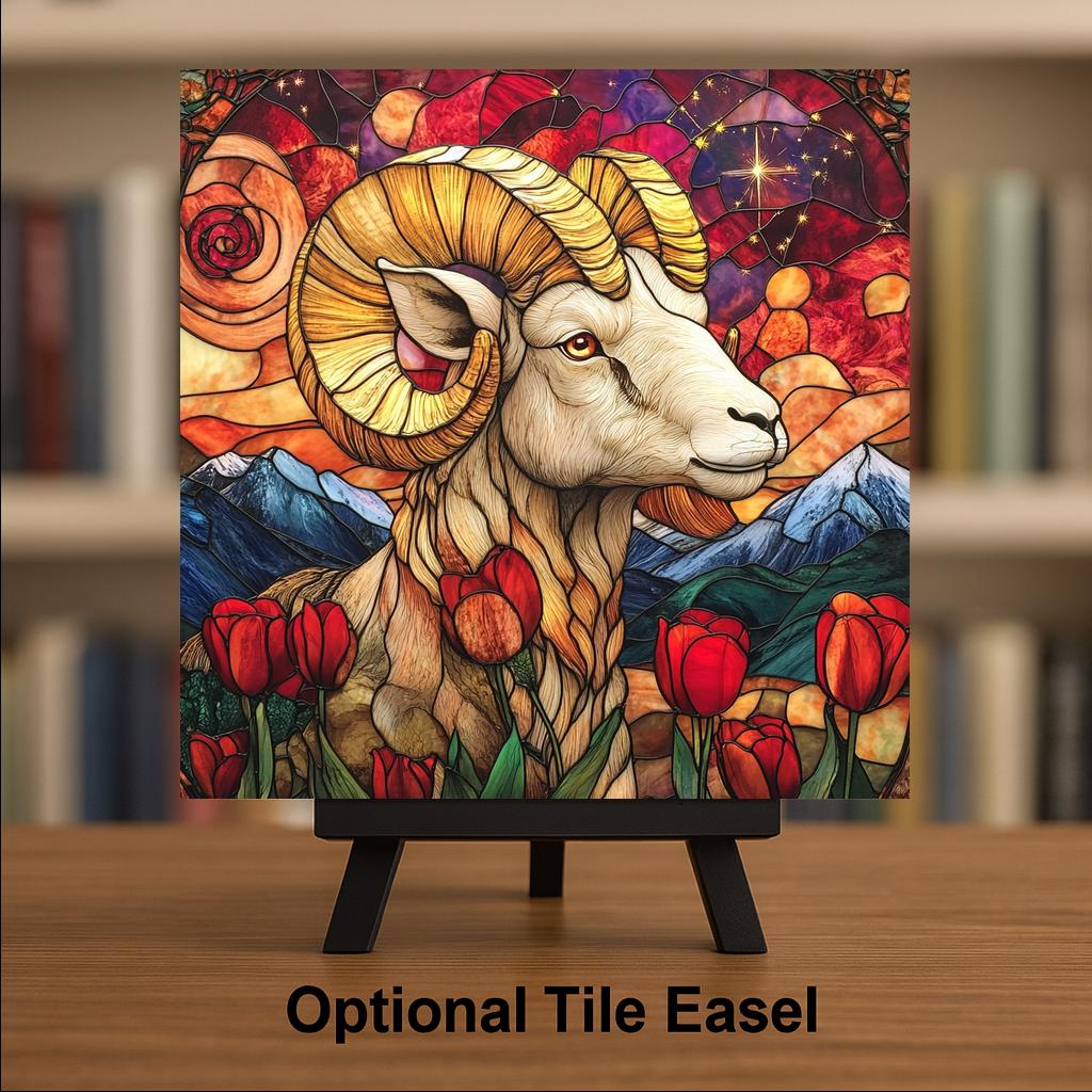Ideal for astrology lovers, spring birthdays, or anyone drawn to vibrant celestial art. This tile fits beautifully into a gallery wall, meditation space, or gift set for an Aries in your life. The intricate stained-glass style gives it the appearance of illuminated art, whether placed in direct light or as a decorative accent.