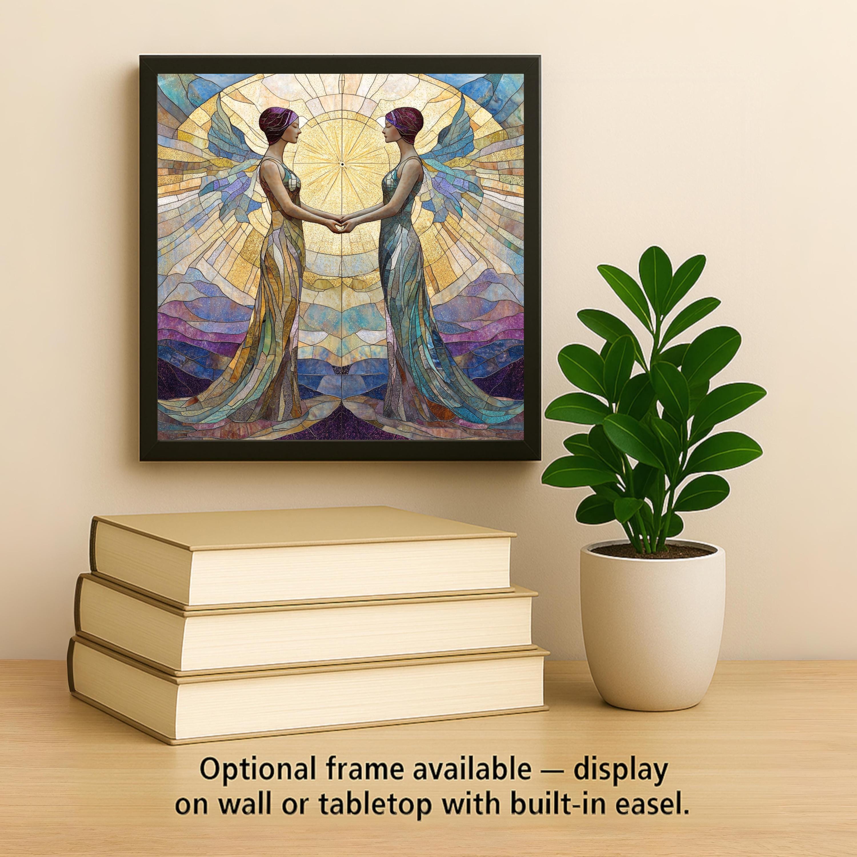 Thoughtfully designed for astrology lovers and art collectors alike, this piece is perfect for birthdays, spiritual milestones, or anyone who resonates with Gemini's dual nature and intellectual spark. The stylized figures are ethereal yet grounded—beautifully expressing the essence of balance, reflection, and adaptability.