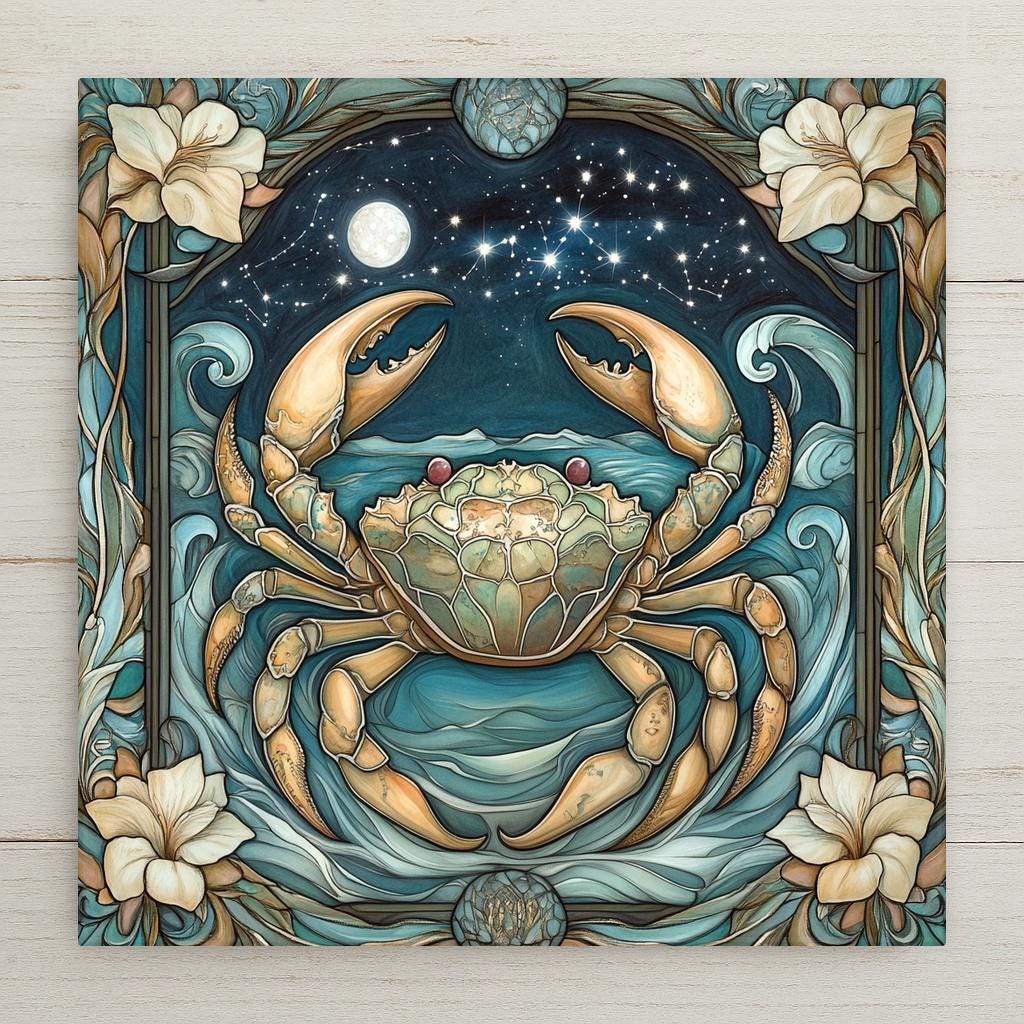 Whether you’re looking for star sign décor or a meaningful gift, this Cancer tile speaks volumes. Cancers are known for their loyalty, sensitivity, and deep emotional intuition. This piece honors those traits with a comforting, artistic touch that fits beautifully in coastal homes, meditation spaces, or gallery walls.