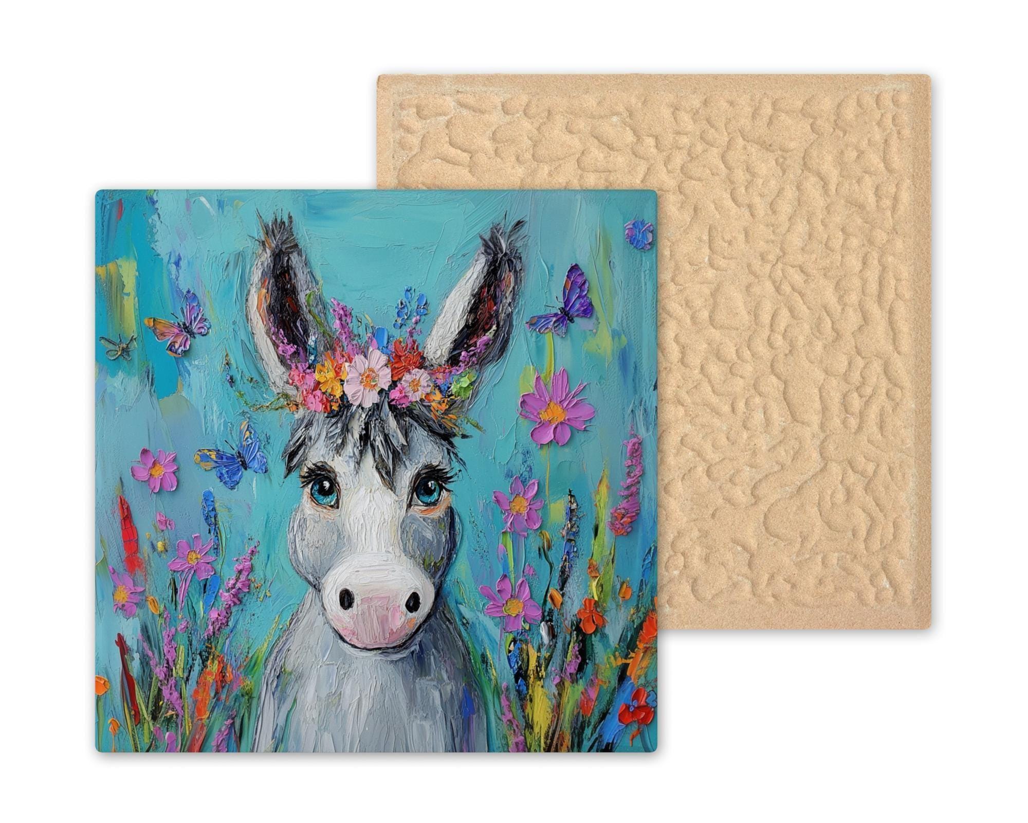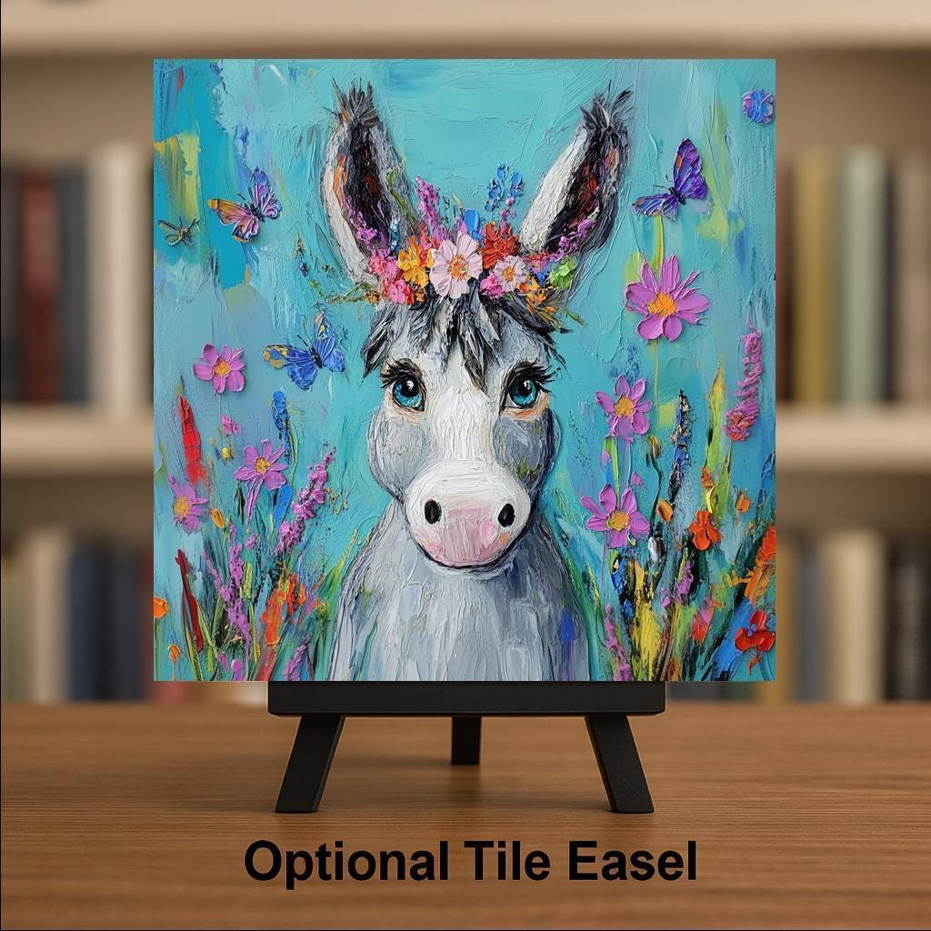This tile also makes a perfect gift for animal lovers, flower fans, or anyone who enjoys bright, joyful decor. It’s a fun way to add a little magic and heart to your space—one happy donkey at a time.