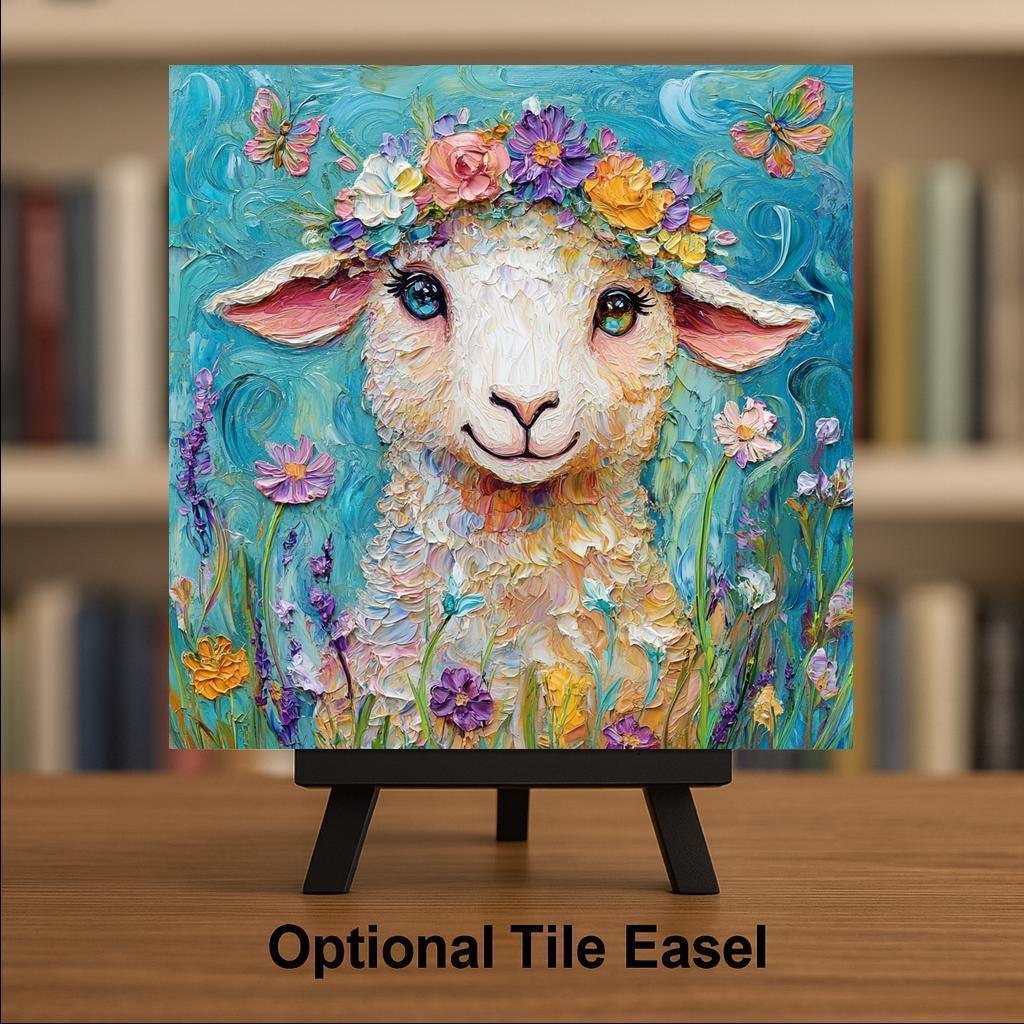 For the perfect finishing touch, choose optional accessories like a tile wall hanger, easel tile stand, or cork backing. However you display it, this happy little lamb will bring a smile to everyone who sees it.