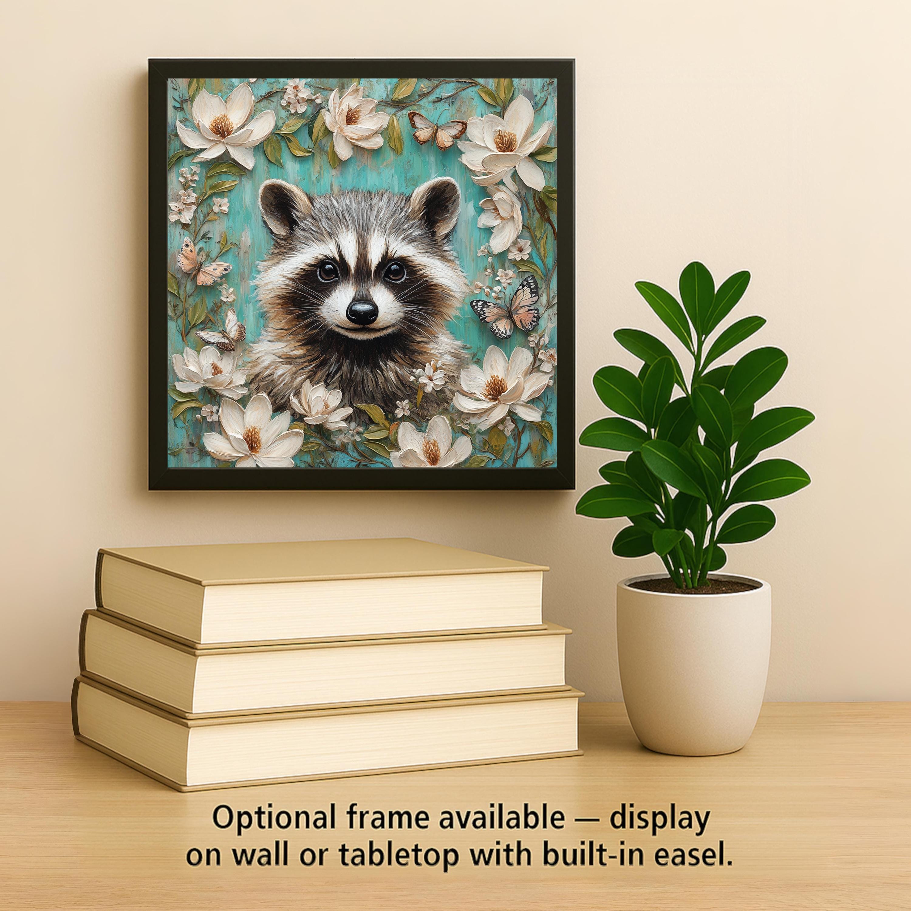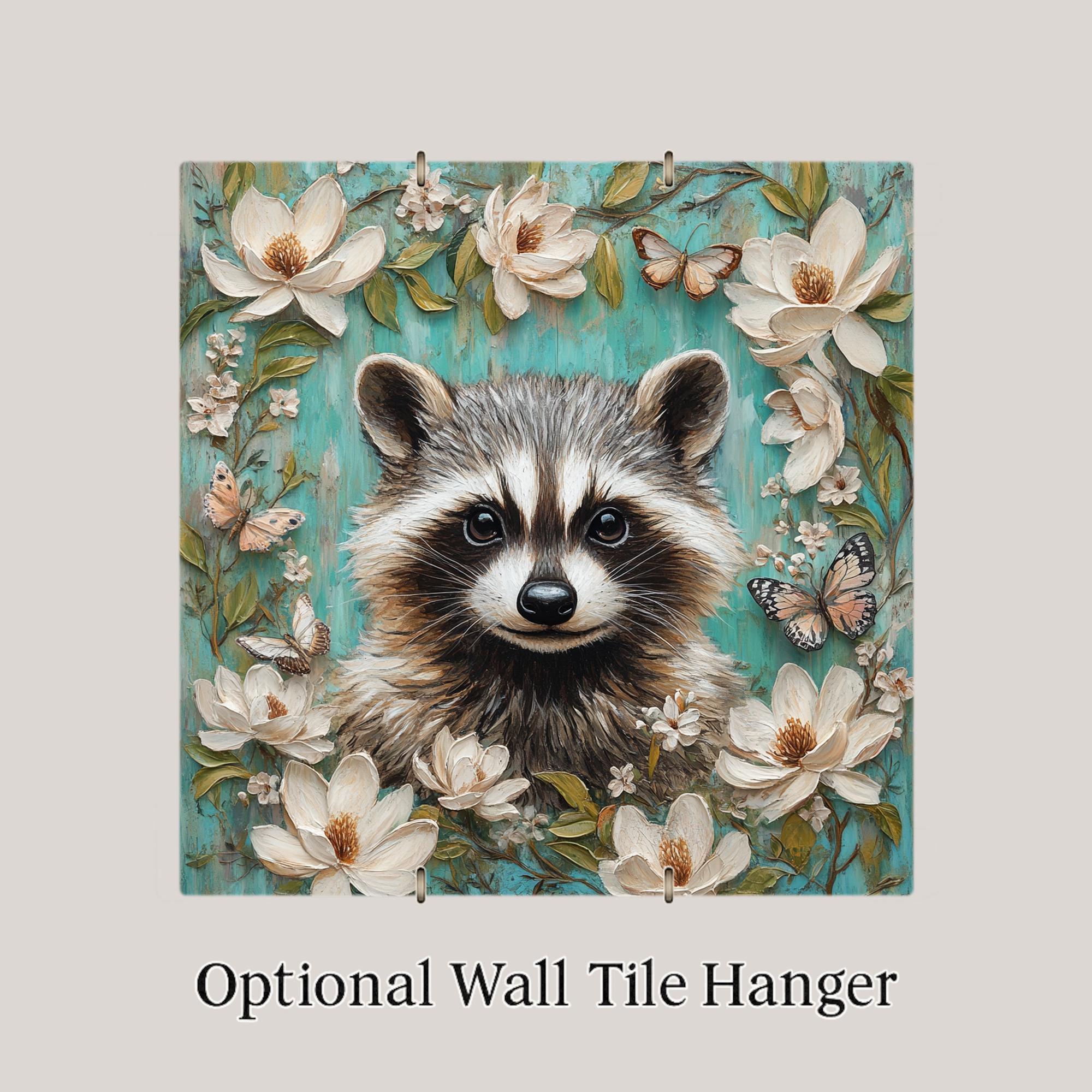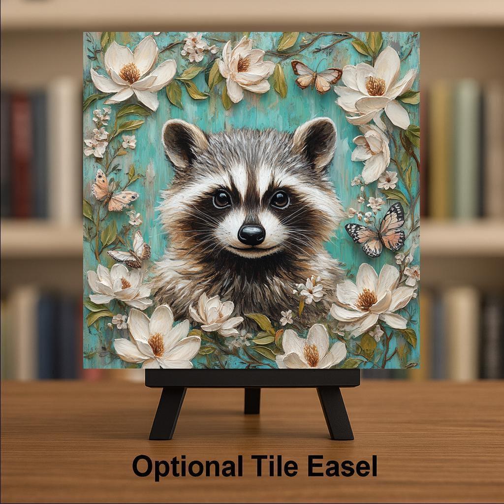 Available with optional tile wall hanger, easel tile stand, or cork backing, this tile is as versatile as it is delightful. It makes a thoughtful gift for animal lovers, whimsical art collectors, or anyone who appreciates woodland themes and playful energy. Add a lighthearted spirit to your home with this adorable raccoon tile.