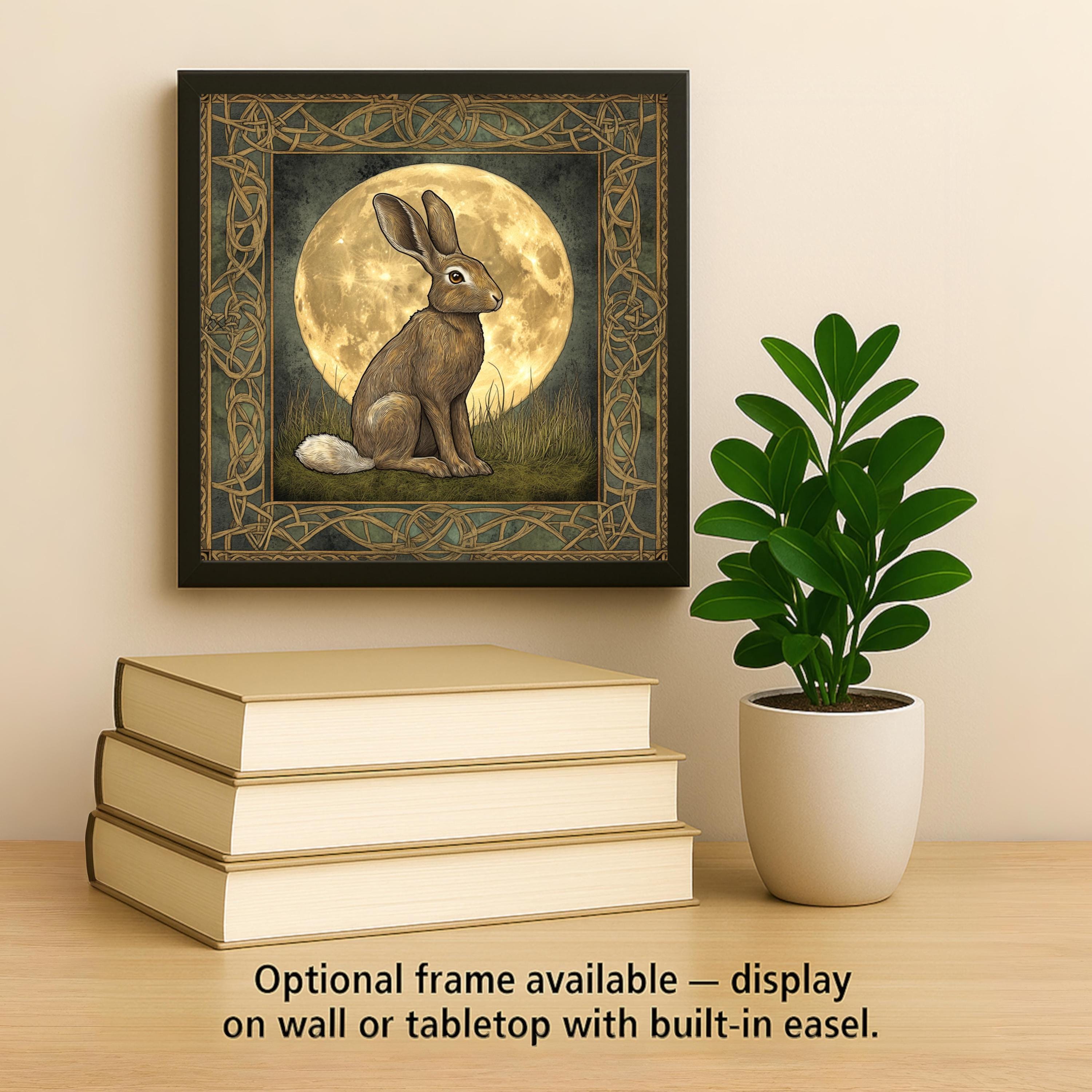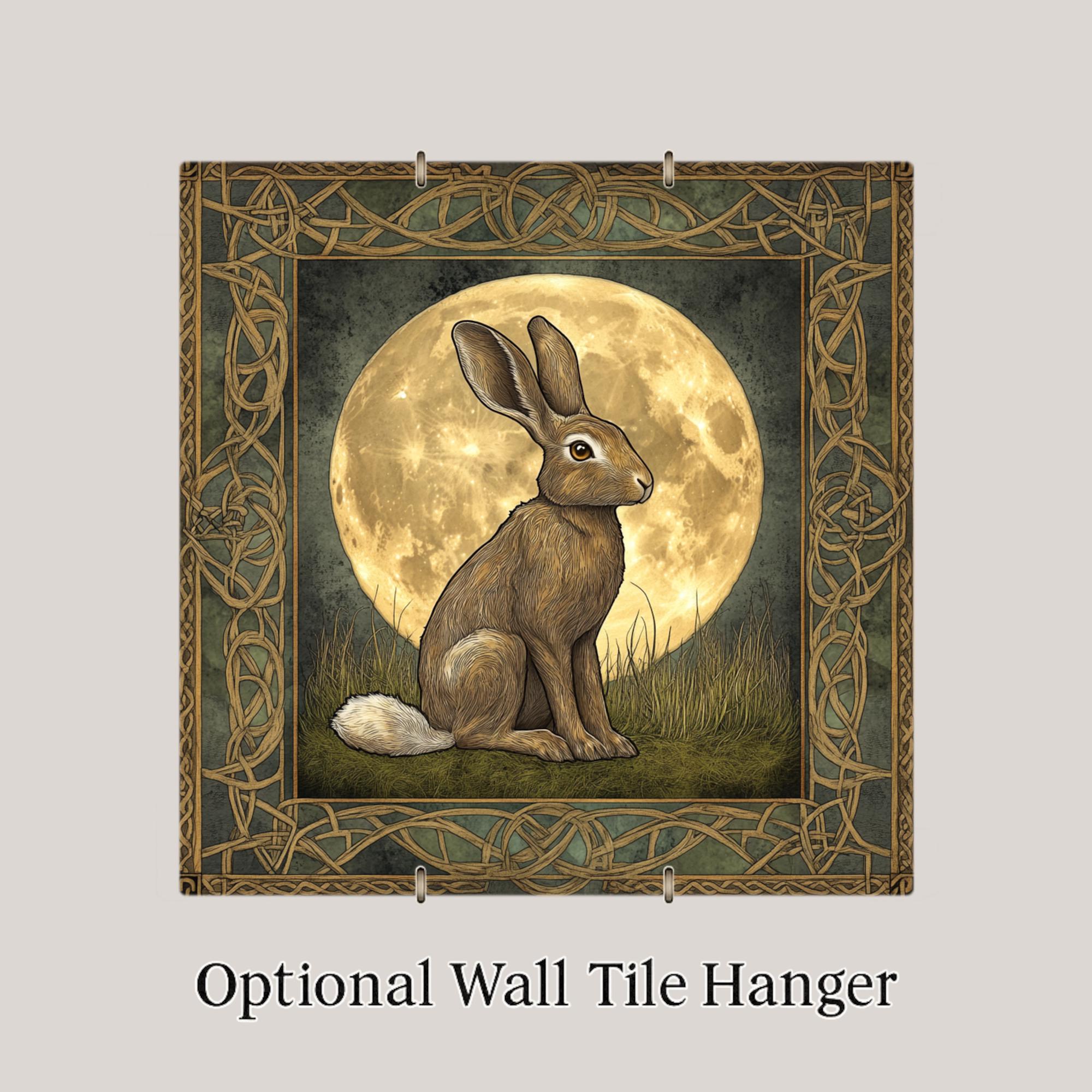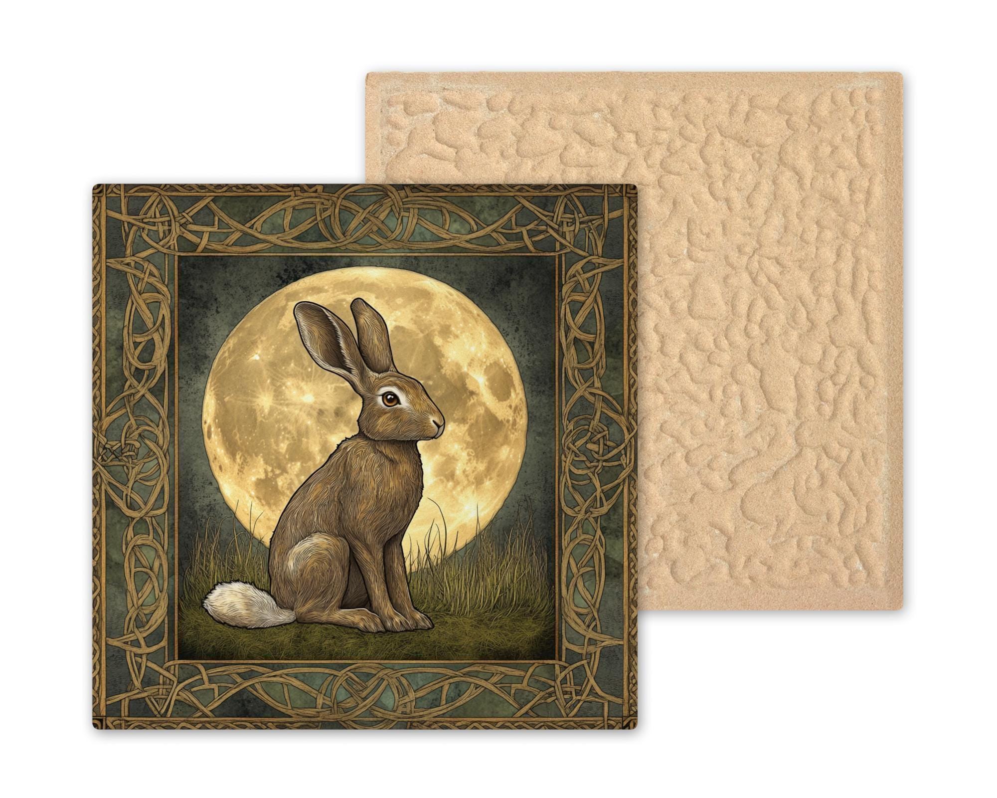 This full moon ceramic tile with Celtic hare brings a sense of ancient tradition and wild spirit to your home. A beautifully detailed brown hare sits under a glowing moon, framed by ornate Celtic knotwork that reflects a deep connection to nature and mythology. The art is rich in symbolism, celebrating cycles, intuition, and the sacred harmony between earth and sky.